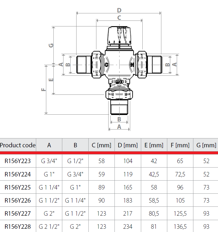 Valva termostatica Giacomini R156Y224, 1" - 3/4”, filet interior / exterior, alama, 30–65 °C, functie anti-oparire, pentru instalatii de apa calda menajera