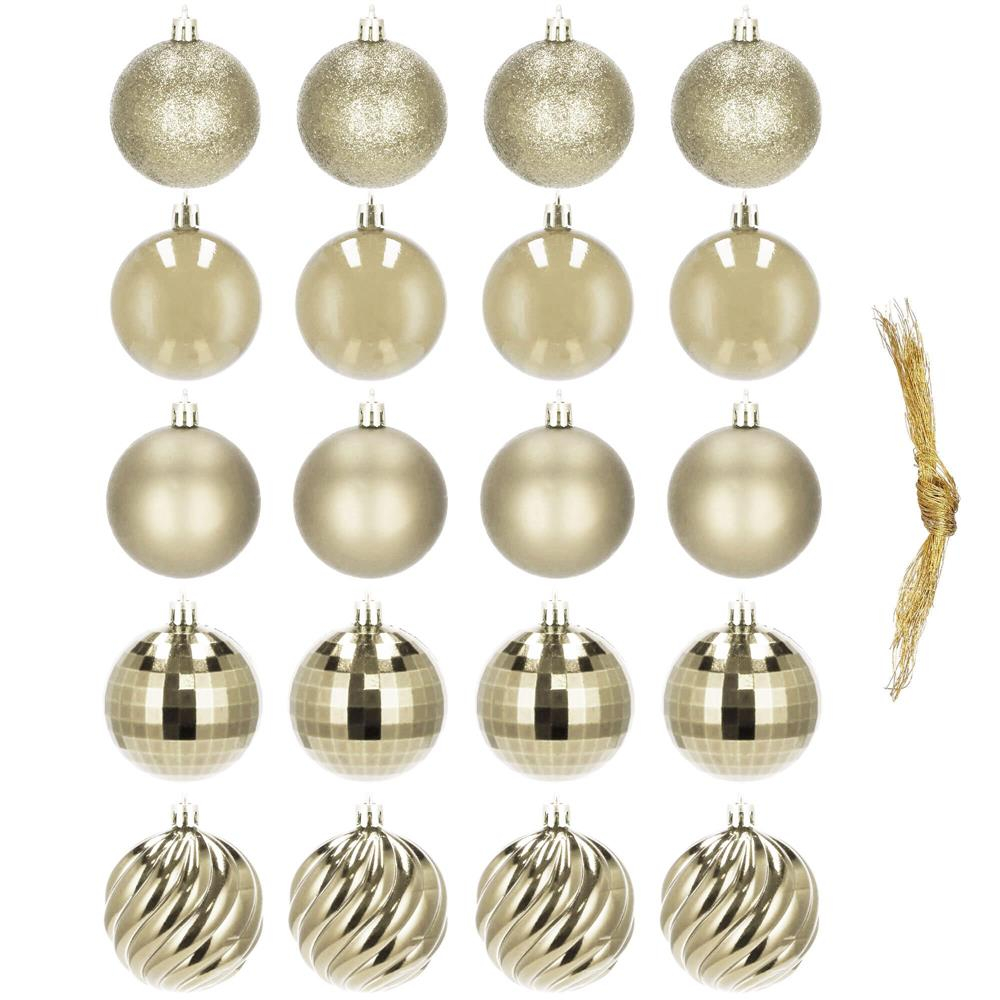 Set globuri de Craciun, 20 bucati, 5 modele, 6cm, auriu