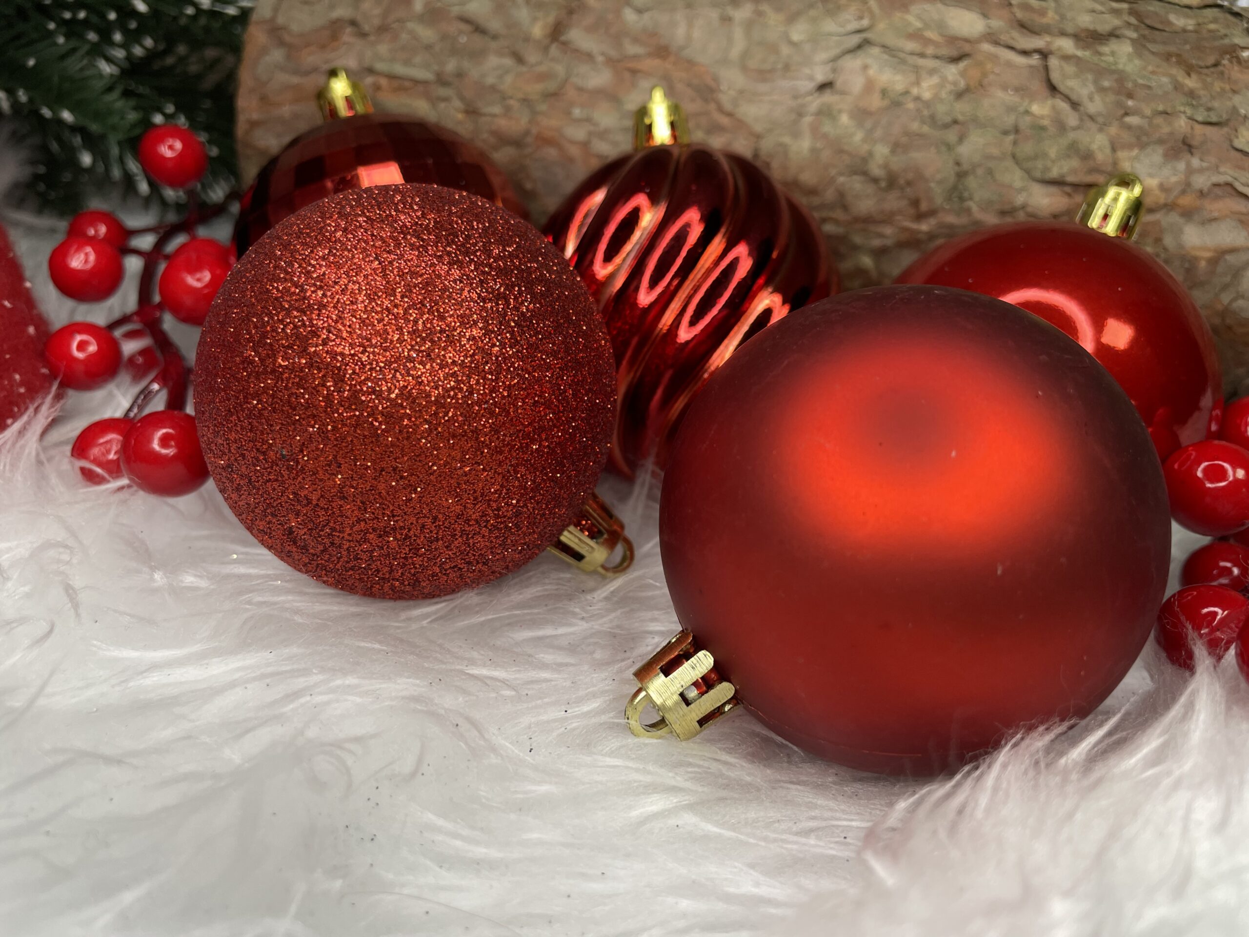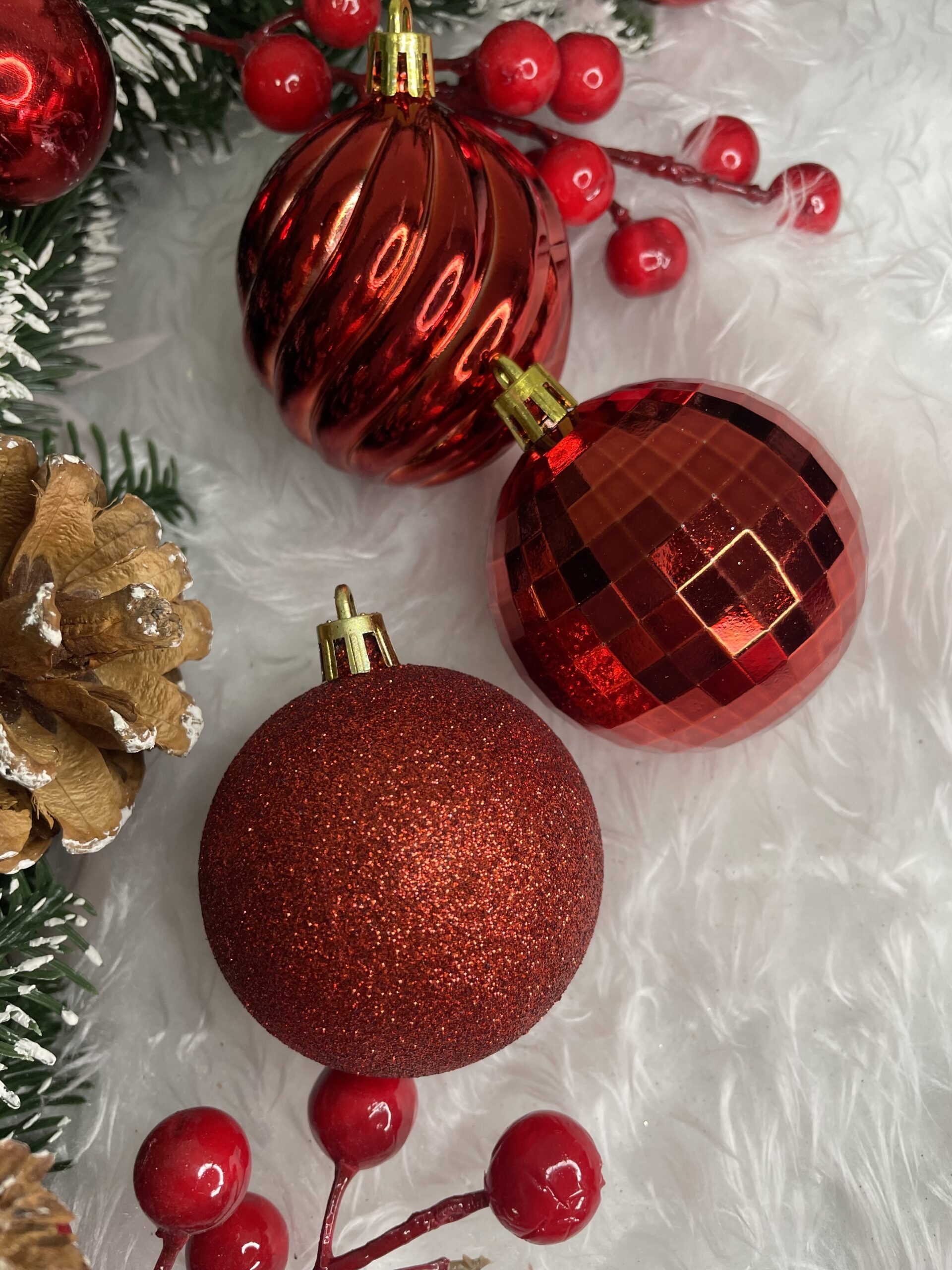 Set globuri de Craciun, 20 bucati, 5 modele, 6cm, rosu