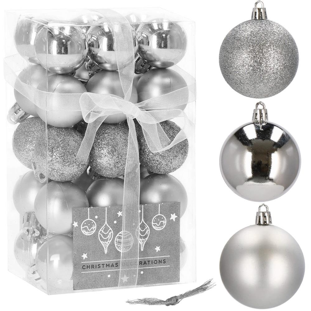 Culoare: argintiu Material: plastic Cantitate: 30 bucati de globulete Dimensiune: 3 cm Modele: mat, sclipici, stralucitor Incasabil, snururi pentru agatat, ambalat frumos Craciunul, ca si intreaga perioada de iarna, este o perioada magica, plina de caldura si de o atmosfera unica, creata datorita unui spectacol de decoratiuni fabuloase si constelatii luminoase incantatoare. Designul din plastic creste siguranta datorita materialului incasabil. Alegerea lor in locul globurilor de sticla va contribui la siguranta celor mici din casa. Globuletele pentru bradul de Craciun arata la fel ca cele din sticla. Datorita suprafetei lor netede ca o oglinda si a finisajului cu sclipici, acestea reflecta lumina in mod fantastic, sporind efectul de decoratiuni sclipitoare si stralucitoare, care aduc in minte asocieri cu un peisaj de iarna rece si inzapezit. Incasabil - sigur pentru casele cu copii si animale de companie Culori la moda - ideale atat pentru decoruri traditionale, cat si moderne Impachetate estetic - pur si simplu le infasurati cu panglica si sunt gata de a fi oferite cadou Vin cu snururi decorative - nu trebuie sa va faceti griji cu privire la problemele de agatare Globuletele pentru bradul de Craciun va vor permite sa va decorati casa de Craciun intr-un mod nelimitat. Puteti crea din ele: Aranjamente unice pentru bradul de Craciun Aranjamente de masa si de pervaz Decoratiuni pentru usi si ornamente pentru rame de usa Cadouri practice de Craciun pentru cei dragi Impachetari unice pentru cadouri - folositi mai multe in loc de funda
