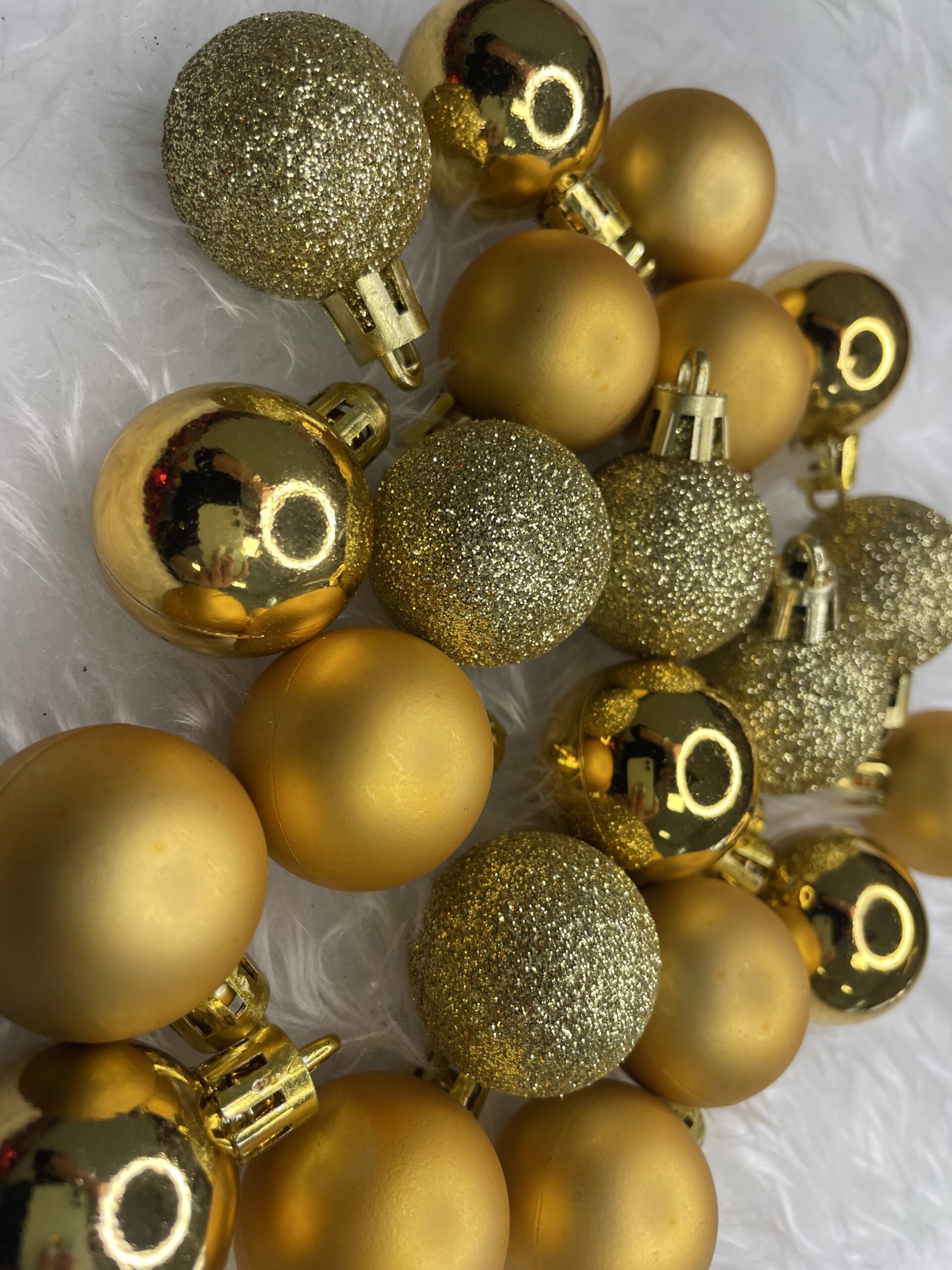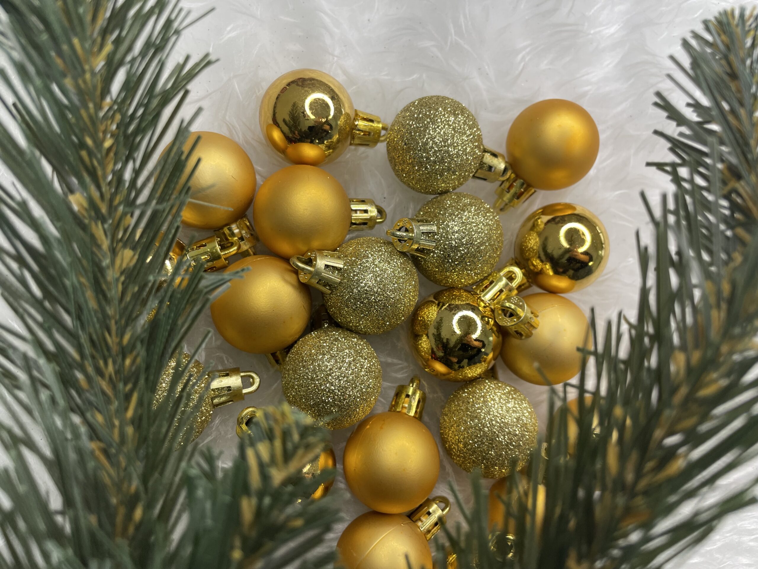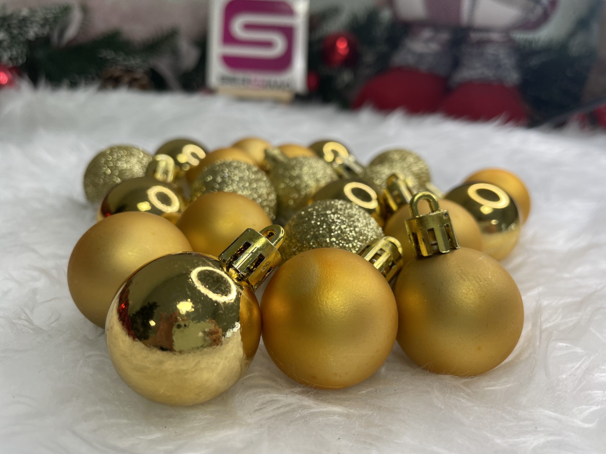 Culoare: auriu Material: plastic Dimensiune: 3 cm Cantitate: 30 bucati de globulete Modele: mat, sclipici, stralucitor Incasabil, sfori aurii pentru agatat Craciunul, ca si intreaga perioada de iarna, este o perioada magica, plina de caldura si de o atmosfera unica, creata datorita unui spectacol de decoratiuni fabuloase si constelatii luminoase incantatoare. Designul din plastic creste siguranta datorita materialului incasabil. Alegerea lor in locul globurilor de sticla va contribui la siguranta celor mici din casa. Globuletele pentru bradul de Craciun arata la fel ca cele din sticla. Datorita suprafetei lor netede ca o oglinda si a finisajului cu sclipici, acestea reflecta lumina in mod fantastic, sporind efectul de decoratiuni sclipitoare si stralucitoare, care aduc in minte asocieri cu un peisaj de iarna rece si inzapezit. Incasabil - sigur pentru casele cu copii si animale de companie Culori la moda - ideale atat pentru decoruri traditionale, cat si moderne Impachetate estetic - pur si simplu le infasurati cu panglica si sunt gata de a fi oferite cadou Vin cu snururi decorative - nu trebuie sa va faceti griji cu privire la problemele de agatare Globuletele pentru bradul de Craciun va vor permite sa va decorati casa de Craciun intr-un mod nelimitat. Puteti crea din ele: Aranjamente unice pentru bradul de Craciun Aranjamente de masa si de pervaz Decoratiuni pentru usi si ornamente pentru rame de usa Cadouri practice de Craciun pentru cei dragi Impachetari unice pentru cadouri - folositi mai multe in loc de funda