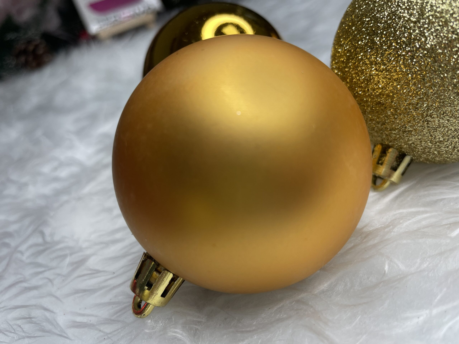 Culoare: auriu Material: plastic/plastic Dimensiune: 6 cm Cantitate: 30 bucati de globulete Modele: mat, sclipici, stralucitor (3 modele x10) Atribute: incasabil, snururi aurii pentru agatat Craciunul, ca si intreaga perioada de iarna, este o perioada magica, plina de caldura si de o atmosfera unica, creata datorita unui spectacol de decoratiuni fabuloase si constelatii luminoase incantatoare. Designul din plastic creste siguranta datorita materialului incasabil. Alegerea lor in locul globurilor de sticla va contribui la siguranta celor mici din casa. Globuletele pentru bradul de Craciun arata la fel ca cele din sticla. Datorita suprafetei lor netede ca o oglinda si a finisajului cu sclipici, acestea reflecta lumina in mod fantastic, sporind efectul de decoratiuni sclipitoare si stralucitoare, care aduc in minte asocieri cu un peisaj de iarna rece si inzapezit. Incasabil - sigur pentru casele cu copii si animale de companie Culori la moda - ideale atat pentru decoruri traditionale, cat si moderne Impachetate estetic - pur si simplu le infasurati cu panglica si sunt gata de a fi oferite cadou Vin cu snururi decorative - nu trebuie sa va faceti griji cu privire la problemele de agatare Globuletele pentru bradul de Craciun va vor permite sa va decorati casa de Craciun intr-un mod nelimitat. Puteti crea din ele: Aranjamente unice pentru bradul de Craciun Aranjamente de masa si de pervaz Decoratiuni pentru usi si ornamente pentru rame de usa Cadouri practice de Craciun pentru cei dragi Impachetari unice pentru cadouri - folositi mai multe in loc de funda