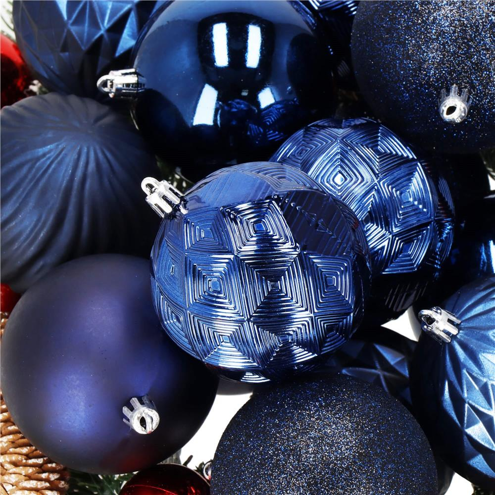 Culoare: nuante de albastru inchis Material: plastic Dimensiune: 8 cm Cantitate: 30 de bucati de globulete Modele: 6x modele diferite Incasabil, snur argintiu pentru agatat Craciunul, ca si intreaga perioada de iarna, este o perioada magica, plina de caldura si de o atmosfera unica, creata datorita unui spectacol de decoratiuni fabuloase si constelatii luminoase incantatoare. Designul din plastic creste siguranta datorita materialului incasabil. Alegerea lor in locul globurilor de sticla va contribui la siguranta celor mici din casa. Globuletele pentru bradul de Craciun arata la fel ca cele din sticla. Datorita suprafetei lor netede ca o oglinda si a finisajului cu sclipici, acestea reflecta lumina in mod fantastic, sporind efectul de decoratiuni sclipitoare si stralucitoare, care aduc in minte asocieri cu un peisaj de iarna rece si inzapezit. Globuletele pentru bradul de Craciun va vor permite sa va decorati casa de Craciun intr-un mod nelimitat. Puteti crea din ele: Aranjamente unice pentru bradul de Craciun Aranjamente de masa si de pervaz Decoratiuni pentru usi si ornamente pentru rame de usa Cadouri practice de Craciun pentru cei dragi Impachetari unice pentru cadouri - folositi mai multe in loc de funda