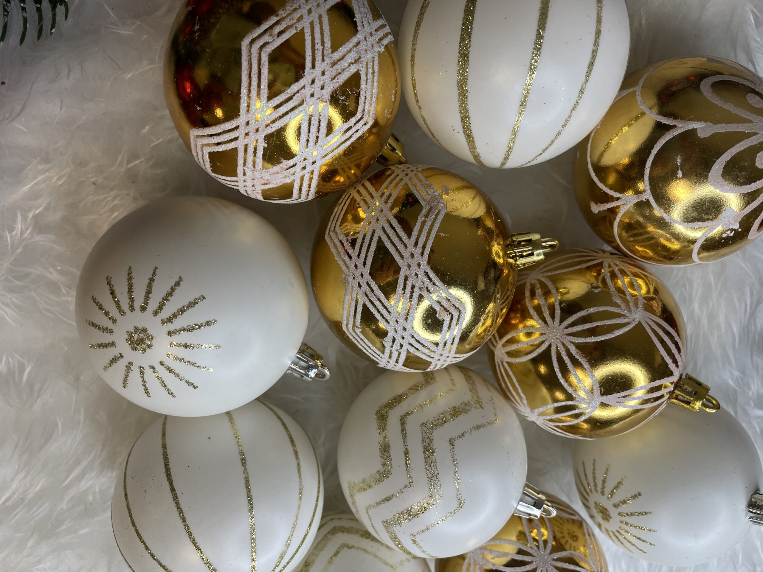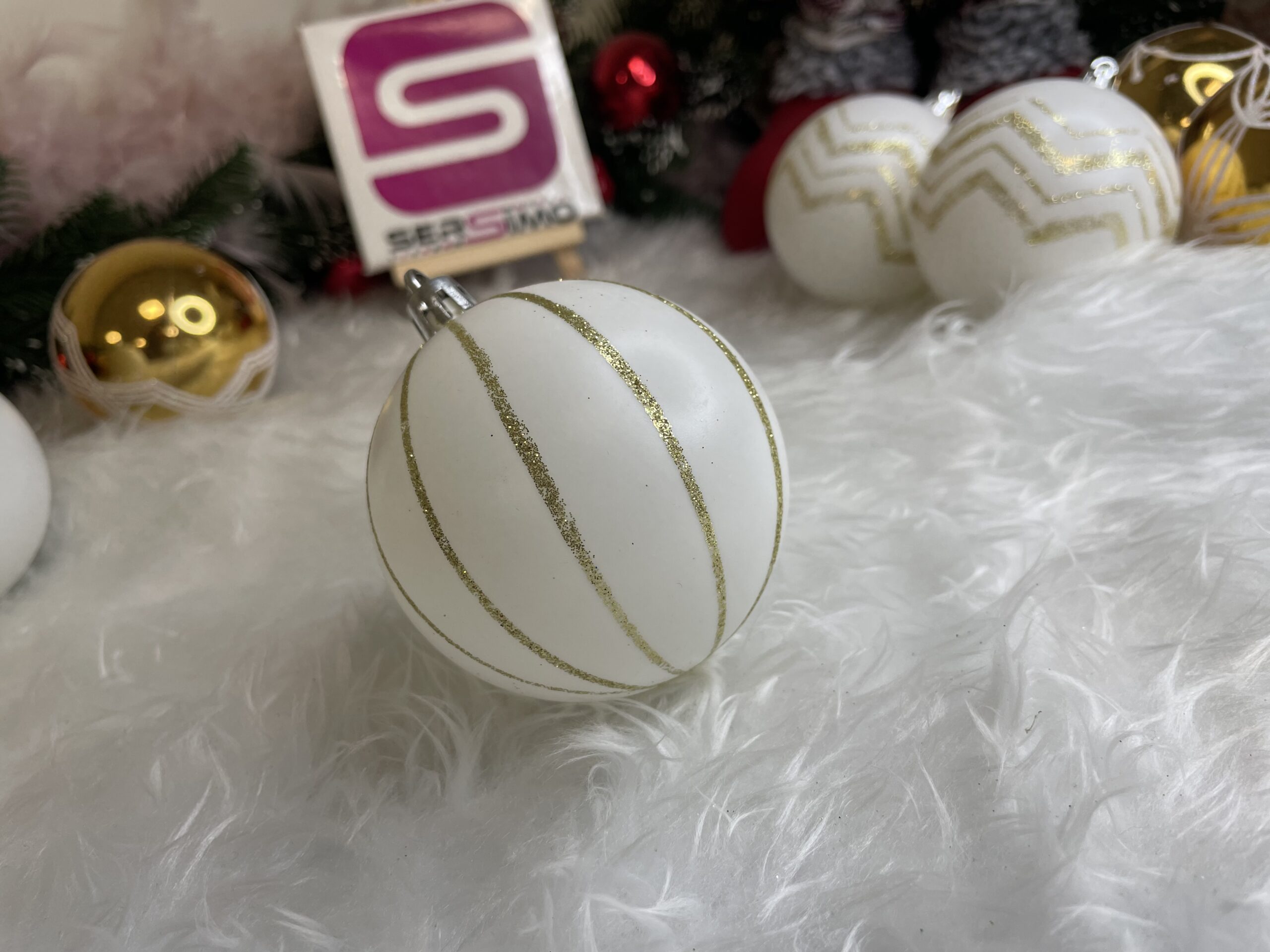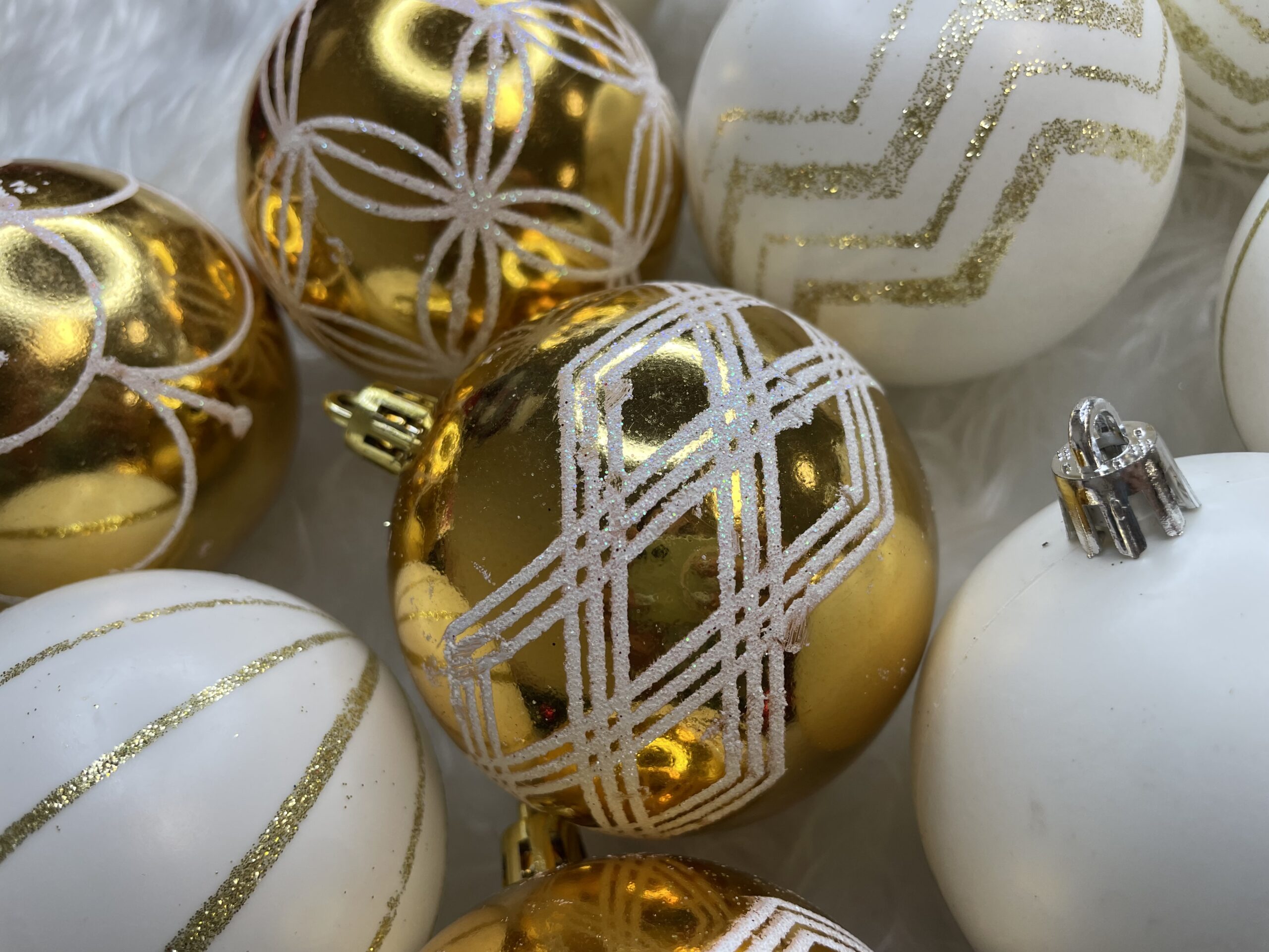 Globurile va vor permite sa creati un decor minunat pentru brad. Arata frumos in timpul zilei si dupa intuneric, insotite de iluminat festiv. Setul include snururi care va permit sa agatati globurile rapid si usor in locul dorit. Designul din plastic creste siguranta datorita materialului incasabil. Alegerea lor in locul globurilor de sticla va contribui la siguranta celor mici din casa. Diversele dimensiuni va permit sa creati modele inedite de aranjare a bradului de Craciun. Culoare: alb auriu Material: plastic Cantitate: 30 bucati globuri (+/- 1 bucata) Modele: mat, sclipici, stralucitor Setul include urmatoarele globuri 15 x alb- 5 cm 15 x auriu- 5 cm Atentie! Numarul de piese din set poate varia + - 1 buc.