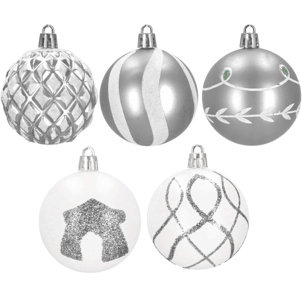 Set globuri de Craciun cu modele de sarbatori, 30 bucati, 6cm, argintiu
