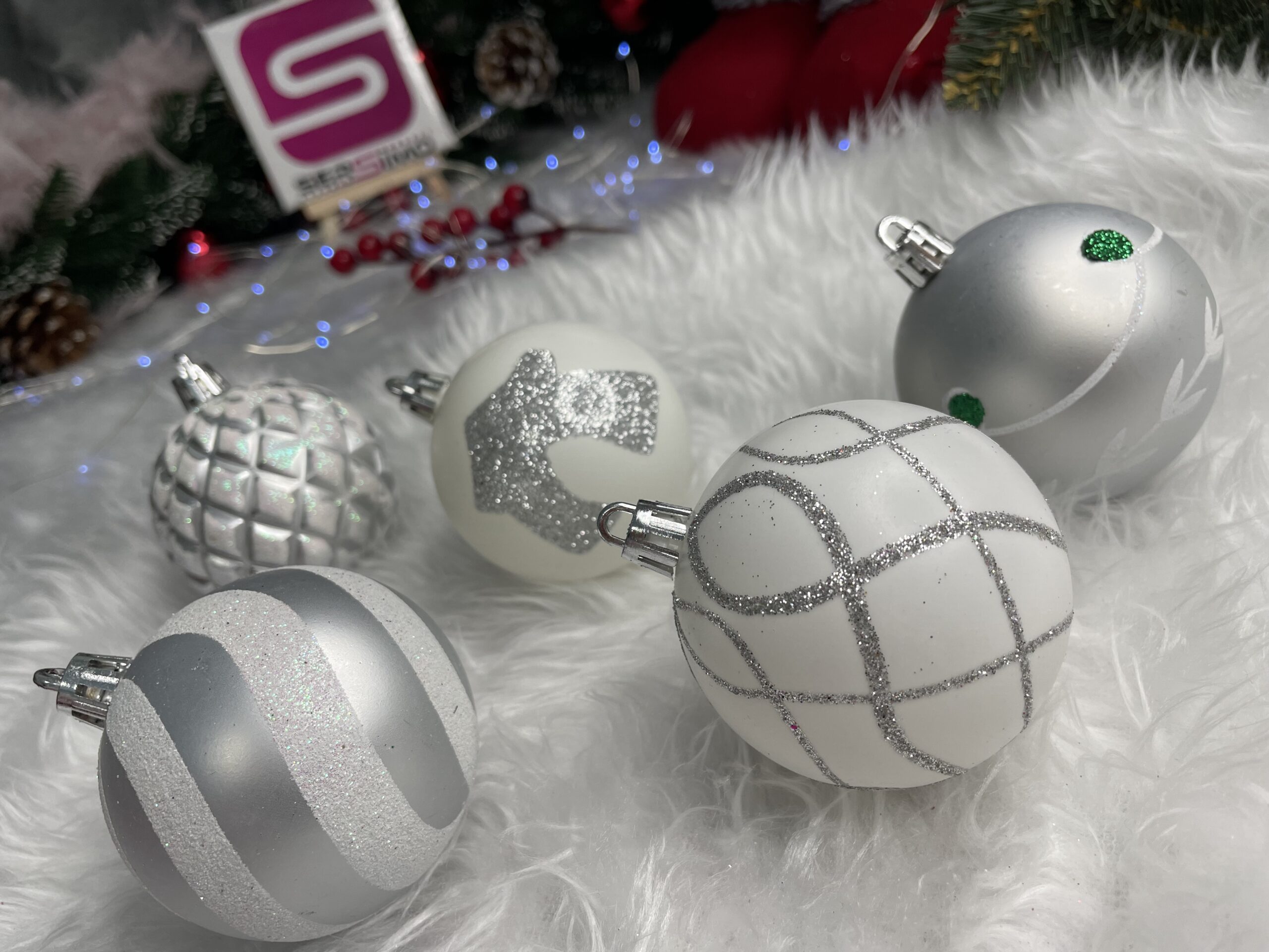 Culoare: argintiu, alb Material: plastic Dimensiune: 6 cm Cantitate: 30 de bucati Model: 5x desene diferite Incasabil, snur argintiu pentru agatat Craciunul, ca si intreaga perioada de iarna, este o perioada magica, plina de caldura si de o atmosfera unica, creata datorita unui spectacol de decoratiuni fabuloase si constelatii luminoase incantatoare. Designul din plastic creste siguranta datorita materialului incasabil. Alegerea lor in locul globurilor de sticla va contribui la siguranta celor mici din casa. Globuletele pentru bradul de Craciun arata la fel ca cele din sticla. Datorita suprafetei lor netede ca o oglinda si a finisajului cu sclipici, acestea reflecta lumina in mod fantastic, sporind efectul de decoratiuni sclipitoare si stralucitoare, care aduc in minte asocieri cu un peisaj de iarna rece si inzapezit. Globuletele pentru bradul de Craciun va vor permite sa va decorati casa de Craciun intr-un mod nelimitat. Puteti crea din ele:  Aranjamente unice pentru bradul de Craciun  Aranjamente de masa si de pervaz  Decoratiuni pentru usi si ornamente pentru rame de usa  Cadouri practice de Craciun pentru cei dragi  Impachetari unice pentru cadouri - folositi mai multe in loc de funda