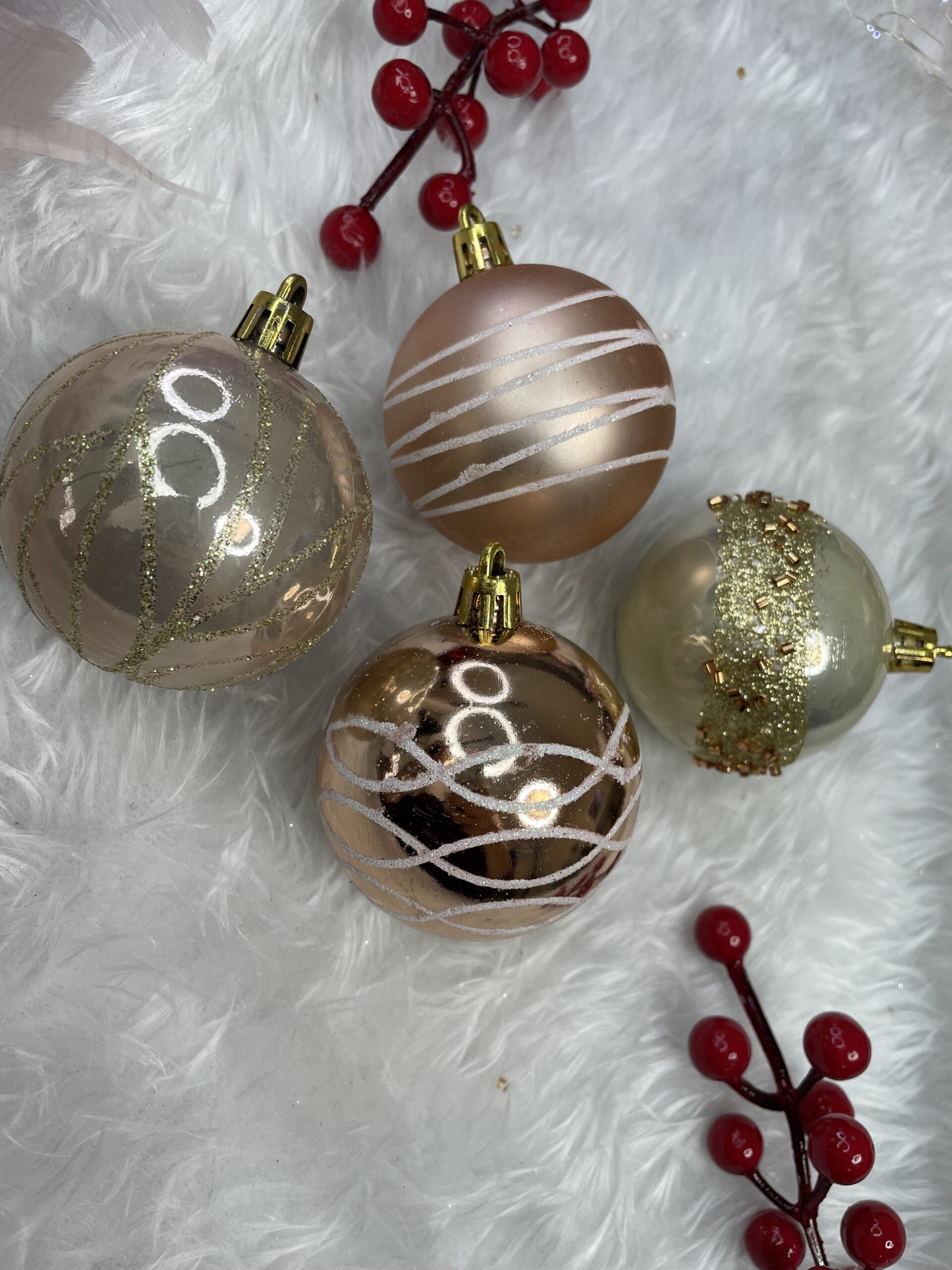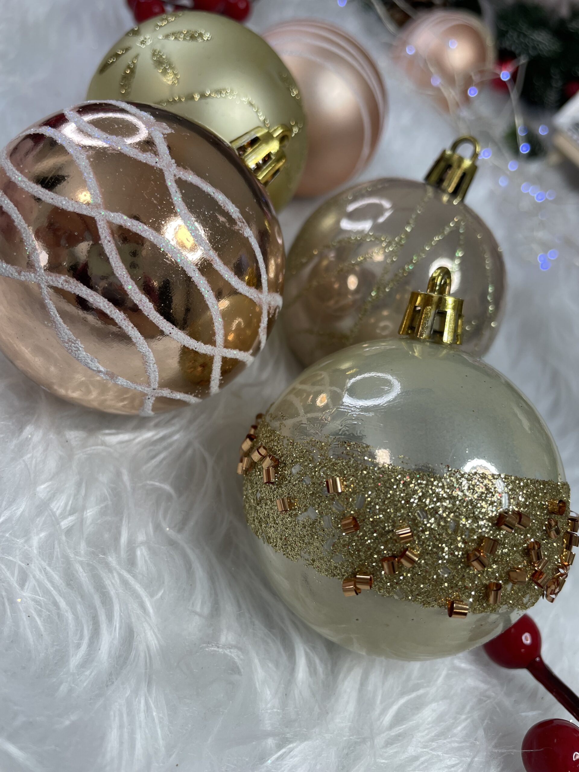 Culoare: auriu, roz Diametru: 6cm Material: plastic Cantitate: 30 de bucati de globulete Modele: mat, sclipici, perlat Incasabil, snur pentru agatat Craciunul, ca si intreaga perioada de iarna, este o perioada magica, plina de caldura si de o atmosfera unica, creata datorita unui spectacol de decoratiuni fabuloase si constelatii luminoase incantatoare. Designul din plastic creste siguranta datorita materialului incasabil. Alegerea lor in locul globurilor de sticla va contribui la siguranta celor mici din casa. Globuletele pentru bradul de Craciun arata la fel ca cele din sticla. Datorita suprafetei lor netede ca o oglinda si a finisajului cu sclipici, acestea reflecta lumina in mod fantastic, sporind efectul de decoratiuni sclipitoare si stralucitoare, care aduc in minte asocieri cu un peisaj de iarna rece si inzapezit. Globuletele pentru bradul de Craciun va vor permite sa va decorati casa de Craciun intr-un mod nelimitat. Puteti crea din ele: Aranjamente unice pentru bradul de Craciun Aranjamente de masa si de pervaz Decoratiuni pentru usi si ornamente pentru rame de usa Cadouri practice de Craciun pentru cei dragi Impachetari unice pentru cadouri - folositi mai multe in loc de funda