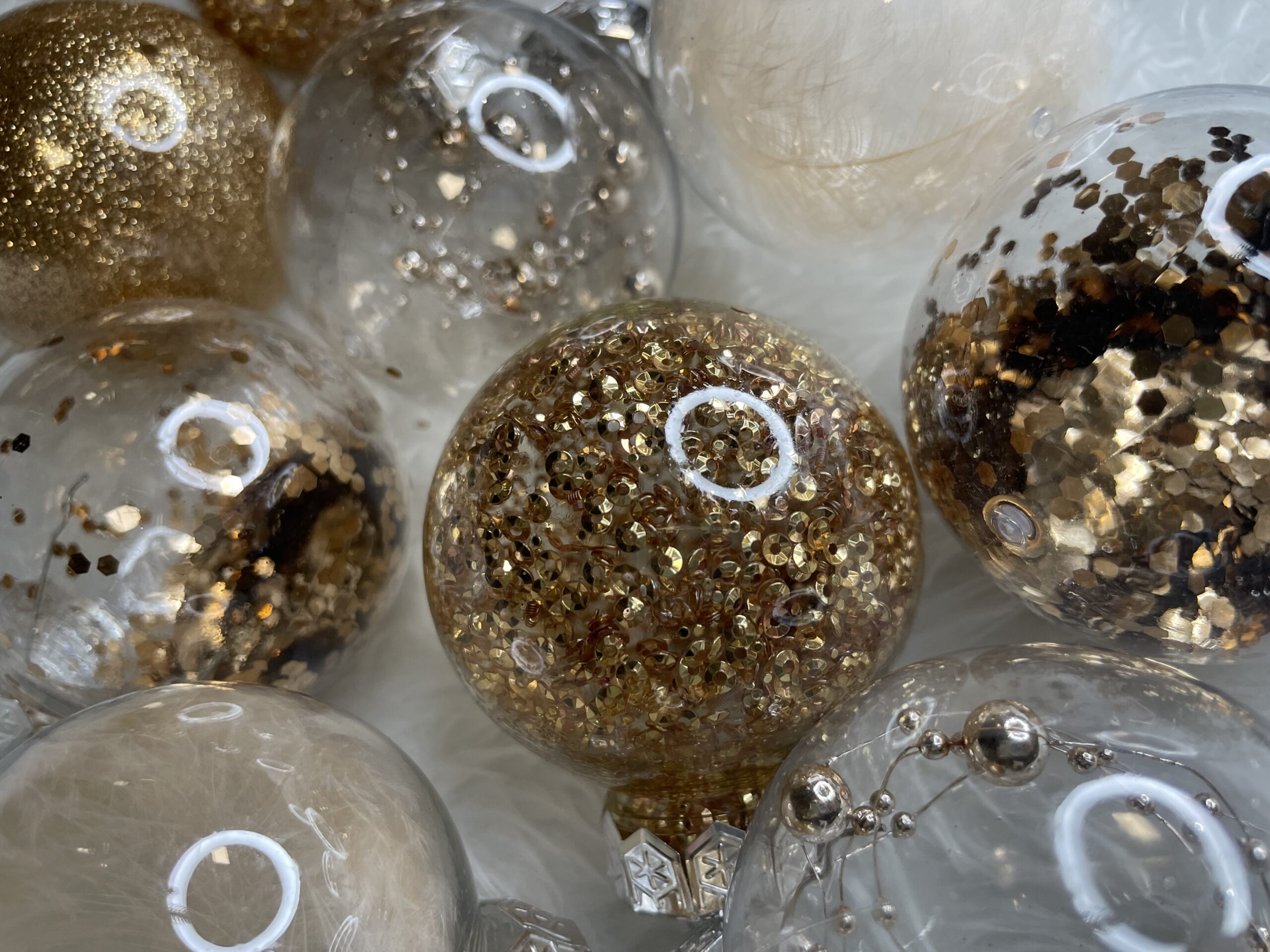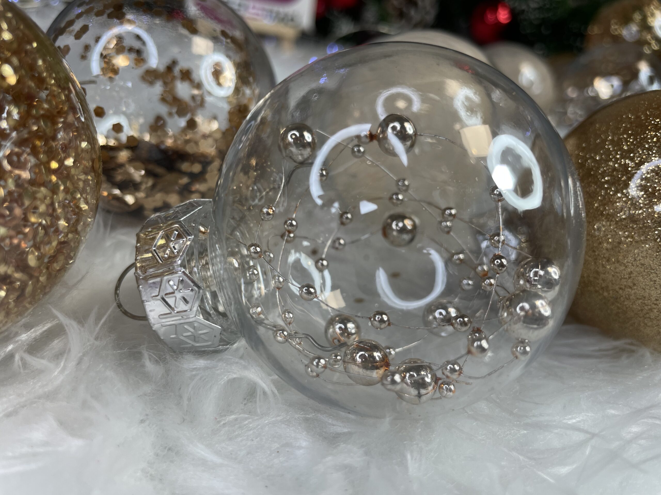 Culoare: transparent cu interior auriu si argintiu Material: plastic Cantitate: 30 de bucati de globulete Desene: modele: 5 modele diferite Incasabil, snur pentru agatat Setul include: 6x globulete rotunde transparente umplute cu margele - 6 cm, 6x globulete rotunde transparente rotunde umplute cu sclipici - 6 cm 6x globulete rotunde transparente rotunde umplute cu confetti - 6 cm 6x globulete rotunde transparente rotunde umplute cu paiete - 6 cm 6x globulete rotunde transparente rotunde umplute cu pene - 6 cm Craciunul, ca si intreaga perioada de iarna, este o perioada magica, plina de caldura si de o atmosfera unica, creata datorita unui spectacol de decoratiuni fabuloase si constelatii luminoase incantatoare. Designul din plastic creste siguranta datorita materialului incasabil. Alegerea lor in locul globurilor de sticla va contribui la siguranta celor mici din casa. Globuletele pentru bradul de Craciun arata la fel ca cele din sticla. Datorita suprafetei lor netede ca o oglinda si a finisajului cu sclipici, acestea reflecta lumina in mod fantastic, sporind efectul de decoratiuni sclipitoare si stralucitoare, care aduc in minte asocieri cu un peisaj de iarna rece si inzapezit. Globuletele pentru bradul de Craciun va vor permite sa va decorati casa de Craciun intr-un mod nelimitat. Puteti crea din ele: Aranjamente unice pentru bradul de Craciun Aranjamente de masa si de pervaz Decoratiuni pentru usi si ornamente pentru rame de usa Cadouri practice de Craciun pentru cei dragi Impachetari unice pentru cadouri - folositi mai multe in loc de funda