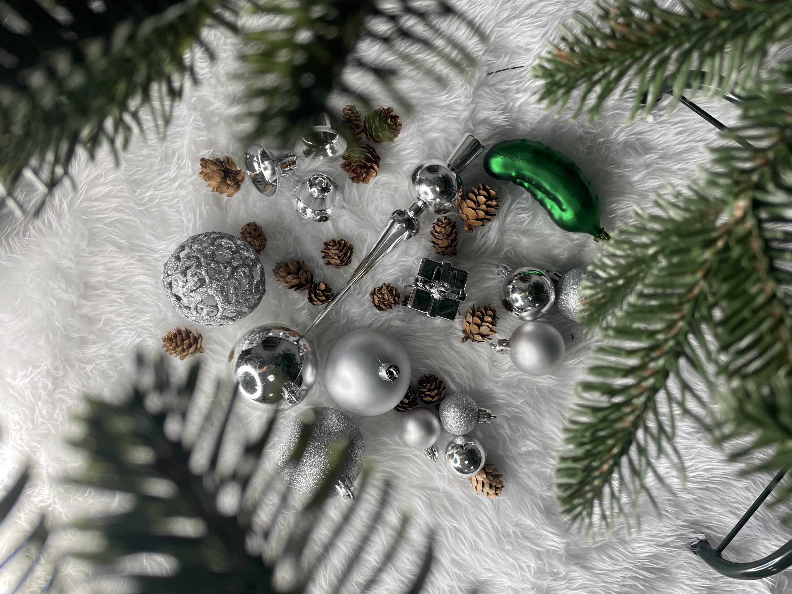Globurile si decoratiunile dintr-un set cu o singura culoare va vor permite sa creati un decor minunat pentru brad. Arata frumos in timpul zilei si dupa intuneric, insotite de iluminat festiv. Setul include snururi care va permit sa agatati globurile rapid si usor in locul dorit. Designul din plastic creste siguranta datorita materialului incasabil. Alegerea lor in locul globurilor de sticla va contribui la siguranta celor mici din casa. Diversele dimensiuni va permit sa creati modele inedite de aranjare a bradului de Craciun. Culoare: argintiu Material: plastic Cantitate: 101 piese Modele: 10 modele diferite incluse in set Diametru: diverse marimi Setul include urmatoarele piese 8x rotund mare (sclipici) - 6 cm 4x rotund mare (lucius) - 6 cm 4x rotund mare (mat) - 6 cm 8x rotund mare (ajurat) - 6 cm 6x rotund mediu (sclipici) - 4 cm 6x rotund mediu (lucius) - 4 cm 6x rotund mediu (mat) - 4 cm 8x rotund mic (sclipici) - 3 cm 4x rotunde mici (lucioase) - 3 cm 4x rotund mic (mat) - 3 cm 12x cadou (lucius) - 4,5 cm 6x cadou (perla) - 4,5 cm 8x clopot - 4 cm 1x castravete - 8 cm 15x con de pin - 4 cm Atentie! Numarul de piese din set poate varia + - 1 buc.