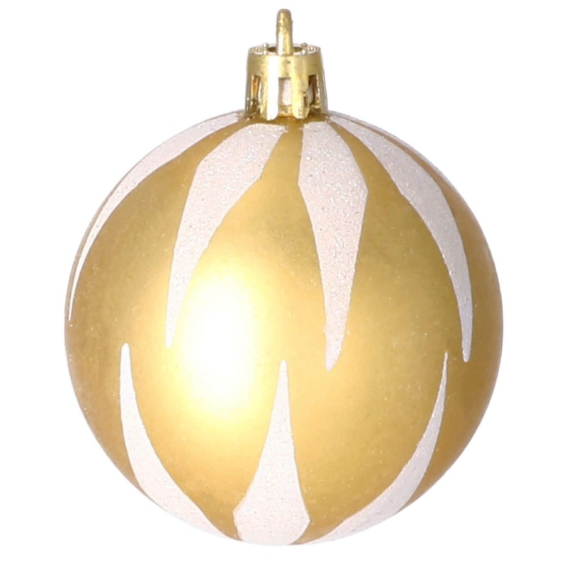 Globurile si decoratiunile dintr-un set cu o singura culoare va vor permite sa creati un decor minunat pentru brad. Arata frumos in timpul zilei si dupa intuneric, insotite de iluminat festiv. Setul include snururi care va permit sa agatati globurile rapid si usor in locul dorit. Designul din plastic creste siguranta datorita materialului incasabil. Alegerea lor in locul globurilor de sticla va contribui la siguranta celor mici din casa. Diversele dimensiuni va permit sa creati modele inedite de aranjare a bradului de Craciun. Culoare: auriu Material: plastic Cantitate: 77 piese Modele: 21 modele diferite incluse in set Diametru: diverse marimi Setul include urmatoarele piese Con de pin 6x - 6,5 cm Bomboane 6x - 7,5 cm Con scurt 4x - 5 cm Steaua 2x - 10 cm Perla rotunda, mare 4x - 6 cm Rotund, mare, din brocart 4x - 6 cm Rotund mare cu decoratiuni albe 4x - 6 cm Rotund mediu mat 4x - 5 cm Brocart rotund mediu 4x - 5 cm Rotund mic lucios 4x - 5 cm Rotund, mic, mat 4x - 4 cm Sclipici mic rotund 4x - 4 cm Rotund mic lucios 4x - 4 cm Brad de Craciun mat 3x - 7 cm Pom de Craciun lucios 3x - 7 cm Cadou mat 3x - 4,5 cm Cadou lucios 3x - 4,5 cm 2x - 6 cm manusa mata Manusa lucioasa 2x - 6 cm Sosete mare 4x - 10,5 cm Soseta mica 3x - 7 cm Atentie! Numarul de piese din set poate varia + - 1 buc.