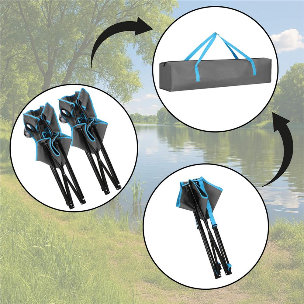 Specificatii tehnice: Tip produs: Set masa si scaune pliante Componente incluse: Masa + 2 scaune + husa de transport Material cadru: Metal Material textil: Poliester Dimensiuni masa: 47x47x45 cm Dimensiuni scaun: 76x80x41 cm Greutate suportata masa: 20 kg Greutate suportata scaun: 120 kg Accesorii: Suporturi pentru bauturi, husa cu maner Culoare: Gri, negru, albastru Scurta descriere: Acest set pliabil cu masa si doua scaune este solutia ideala pentru excursii, camping sau momente relaxante pe balcon. Designul usor si compact permite transportul facil si depozitarea fara efort. Cu structura metalica rezistenta si material textil durabil, ofera confort si stabilitate in orice context outdoor. Caracteristici principale: Constructie pliabila pentru transport usor Include masa, 2 scaune si husa cu fermoar Buzunare pentru bauturi integrate in masa si scaune Gauri pentru fixare in sol in zone cu teren instabil Potrivit pentru picnic, pescuit, terasa, gradina sau festivaluri Scaune cu cotiere si spatar inalt pentru confort sporit Material textil rezistent la uzura si umiditate Design versatil si culori neutre