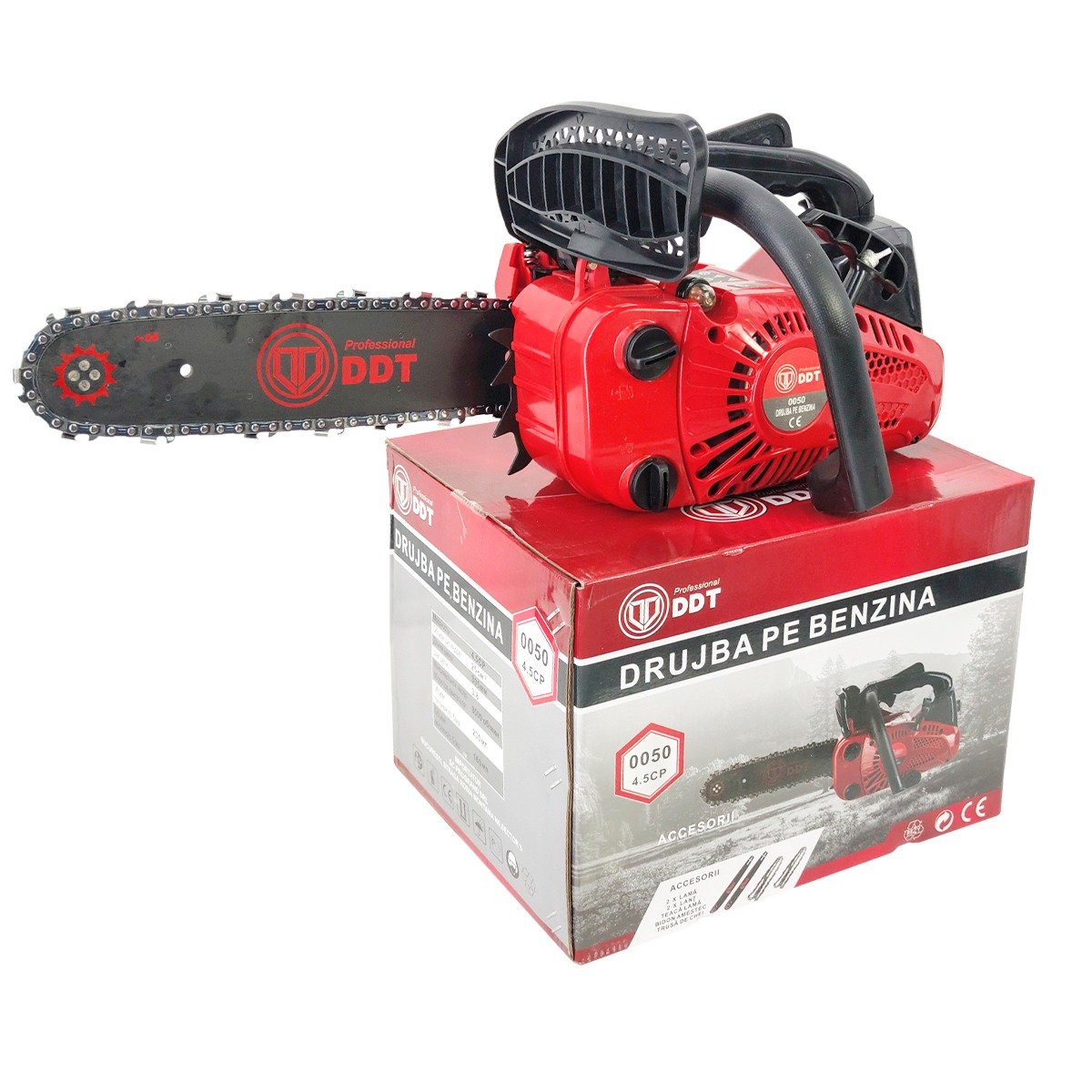 Drujba pe benzina,constructii, DDT 0050, 4.5 cp, 25cm3 2 LAME,2 LANTURI
