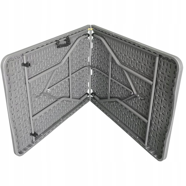 Specificatie: Dimensiuni masa: 180 x 70 x 74 cm (L x l x H) Grosimea profilului: tub cu diametrul de 25 mm si grosimea de 0,9 mm Materiale: HDPE - blat, otel - picioare Culoare: gri, rama argintie Sarcina maxima: 100 kg Masa pliabila este elementul perfect pentru orice eveniment, banchet sau excursie turistica de familie. Datorita posibilitatii de a o plia sub forma de valiza, va puteti deplasa convenabil cu ea literalmente oriunde. In plus, are un maner care usureaza transportul. Pana la opt persoane pot sta la masa, permitandu-va sa petreceti timp cu cei dragi in conditii confortabile. Blatul mesei este gros, masiv si are margini rotunjite.Pentru siguranta marita, masa este echipata cu o incuietoare. Astfel, dupa desfacerea mesei, nu trebuie sa va faceti griji cu privire la stabilitatea ei.