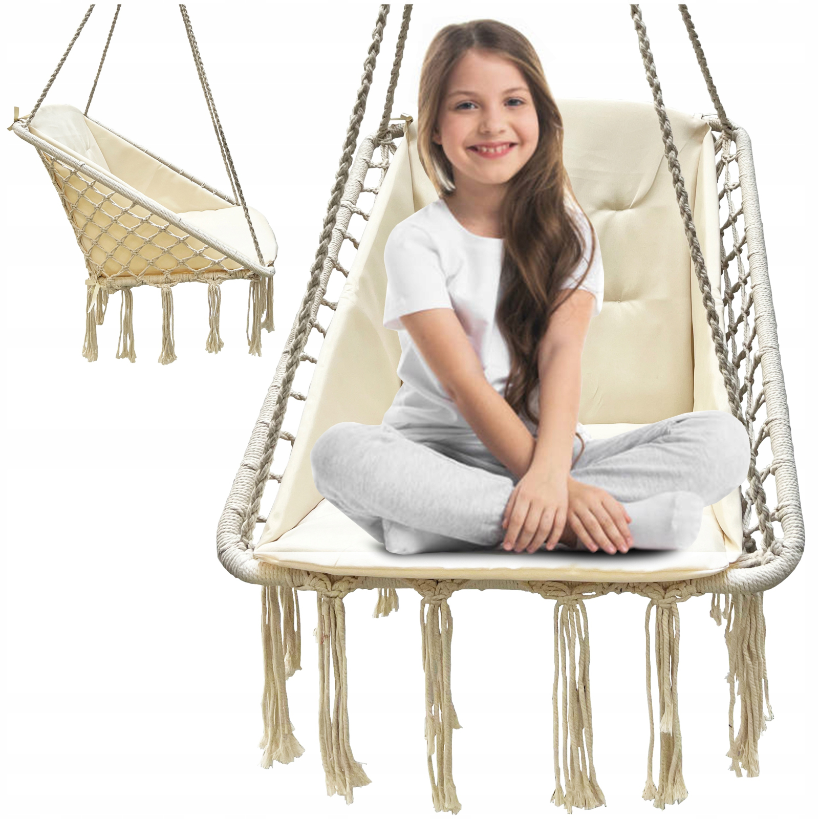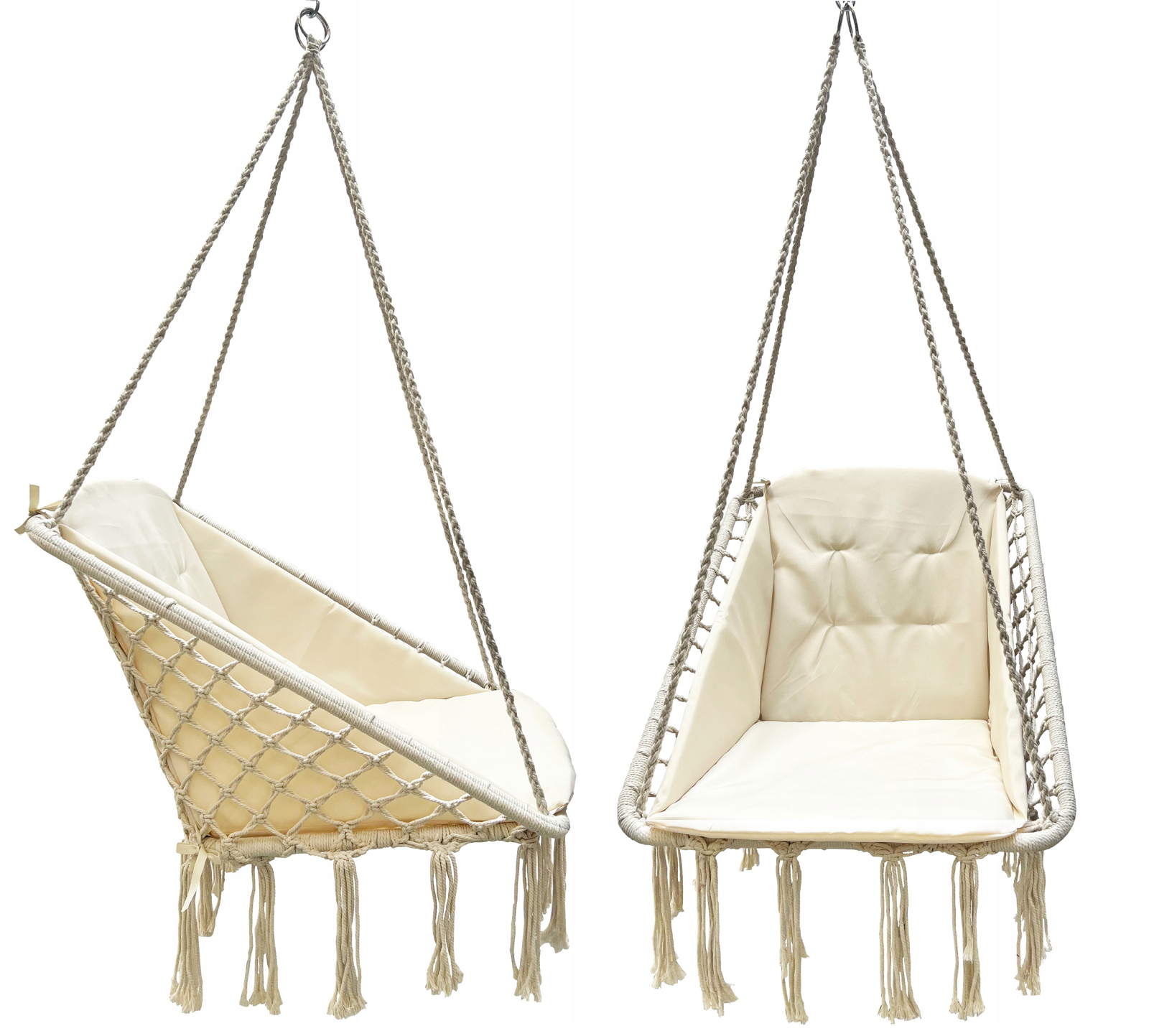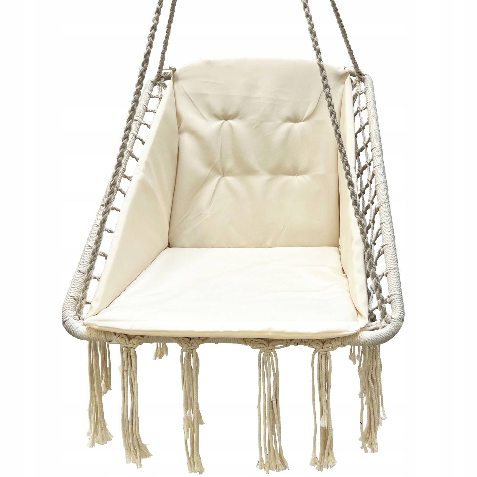 Scaun patrat tip leagan suspendat cu perna pentru casa sau gradina, 60x65x115cm, bej