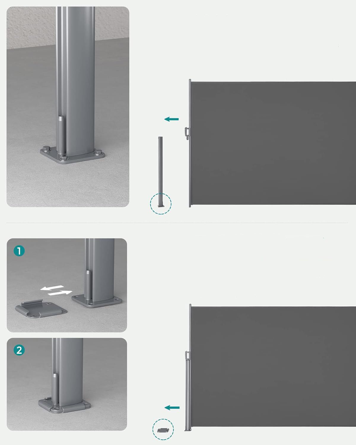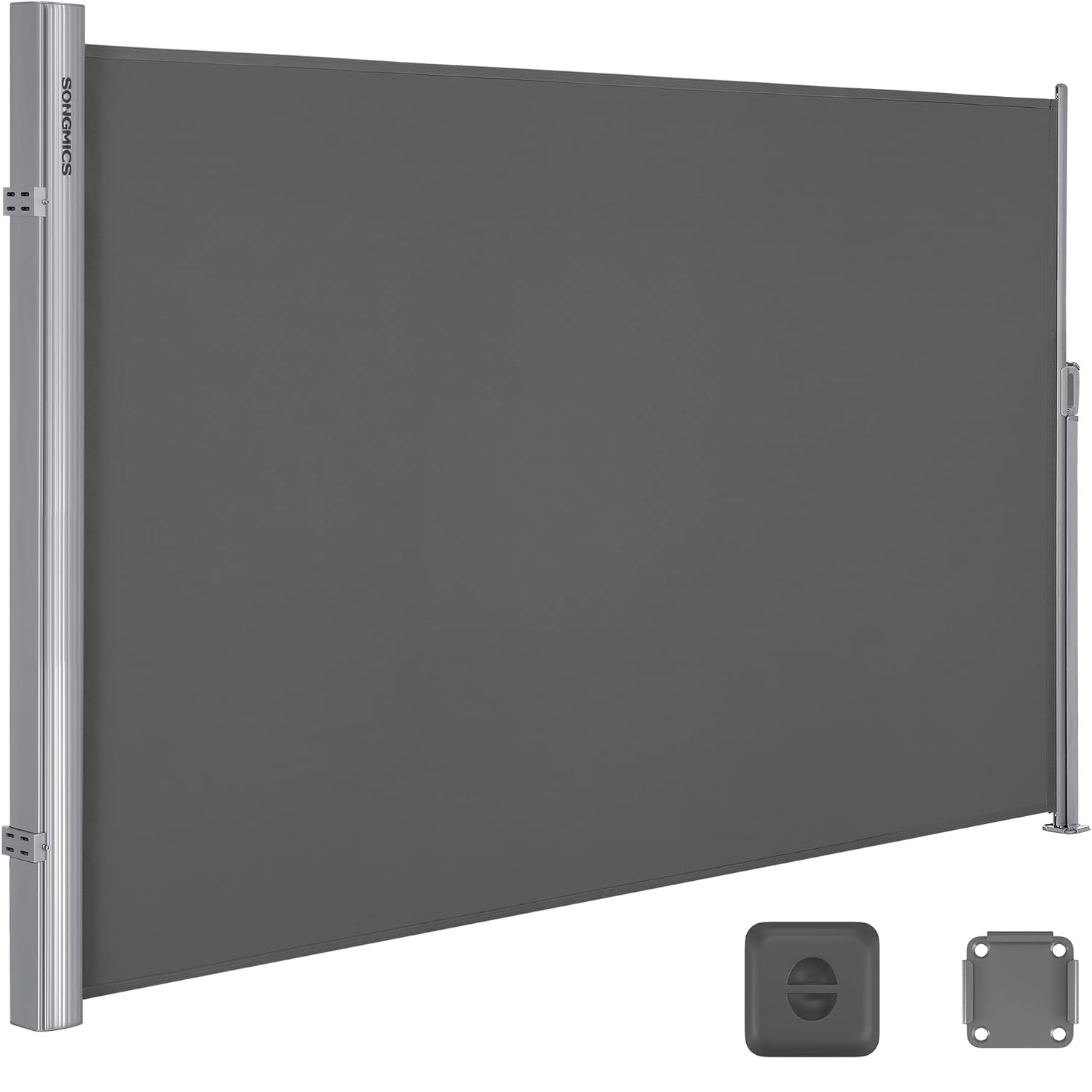 Detalii despre produs: Culoare: Antracit Material: Aliaj de aluminiu, poliester (280 g/m²), strat PU Dimensiuni: 160 x 400 cm (H x L) Greutatea produsului: 9,7 kg Tesatura de copertina din poliester acoperit cu PU de 280 g/m² este rezistenta la stropire si la soare, fiind perfecta pentru protejarea intimitatii si blocarea soarelui datorita UPF 50+. De asemenea, este rezistenta la decolorarea culorilor.Caseta acestui marchizon lateral si stalpul de sustinere sunt fabricate din aliaj de aluminiu de inalta calitate, in timp ce suruburile sunt fabricate din aliaj de zinc-nichel rezistent la rugina si de lunga durata.Datorita instructiunilor clare si a accesoriilor de asamblare incluse, puteti asambla aceasta marchiza in cel mai scurt timp. In plus, o baza de podea cu capac ofera o alta optiune de montare pentru o utilizare mai convenabila.Aceasta marchiza retractabila are un arc de inalta calitate si poate fi intinsa cu usurinta fara niciun zgomot deranjant in timpul utilizarii.Un cort lateral de 160 x 400 cm de la SONGMICS care poate fi folosit pentru a va umbri balconul sau terasa, plus o incuietoare de siguranta pentru copii pe maner care face ca acest cort de exterior sa fie si mai fiabil.