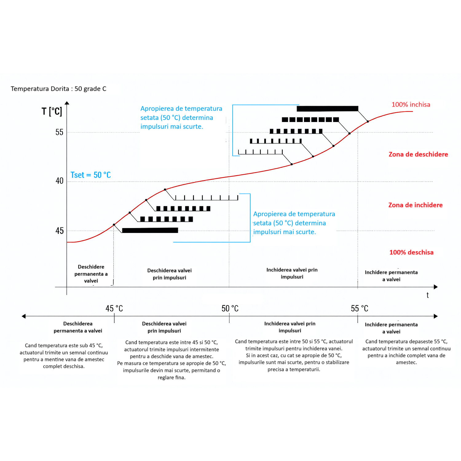 - Domenii de temperatura: 0-100°C, 60-85°C, 20-70°C, 25-45°C