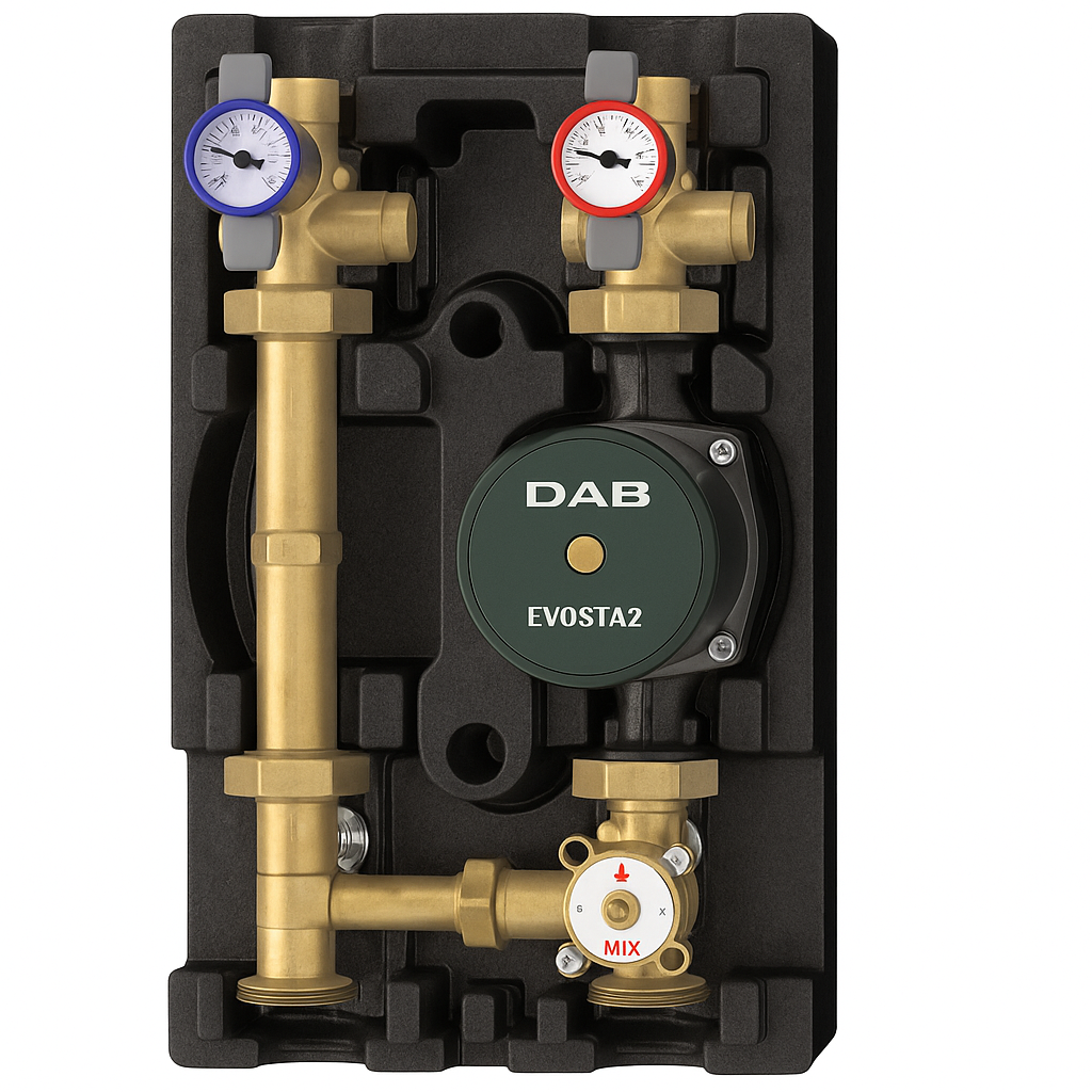 Grup de pompare cu vana de amestec sectoriala Giacomini R586RY103, pompa de circulatie DAB EVOSTA2 sau WILO, eficienta energetica ridicata, 400mp