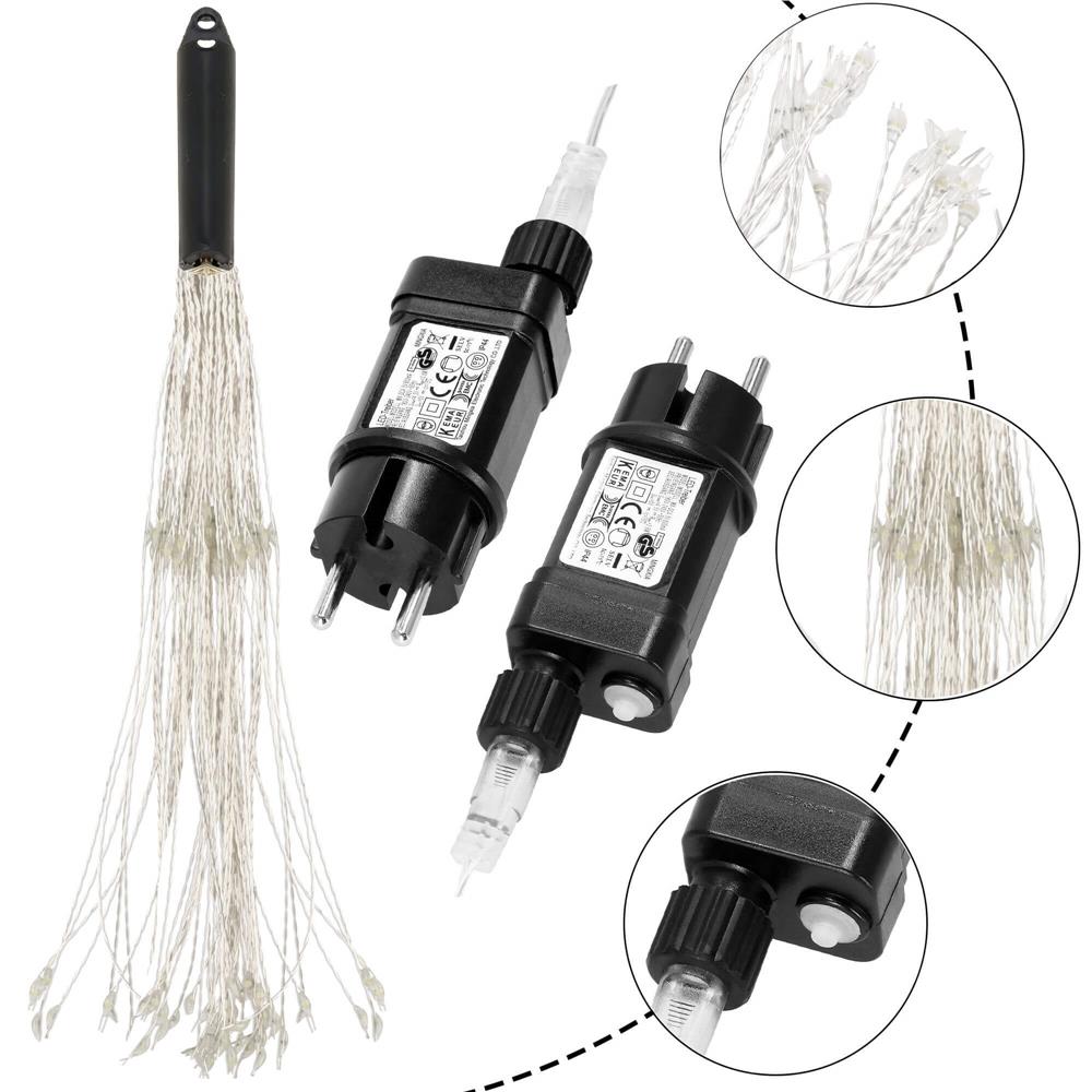 PARAMETRII: Stea exploziva contine 100 de LED-uriCuloare alb receProgramator cu 8 functii: combinatie, val, secventa, luminozitate, blit/sclipire lenta, estompare lenta, blit/sclipire, lumina constantaRamuri metalice, care reflecta frumos lumina si sporesc efectul.24 de crenguteDiametrul sferei atunci cand este desfasurata 40 cmCrengute de aproximativ 20 cm lungimePe fiecare crenguta 5 LED-uriLungime cablu aprox. 3 mStrand lumini 100 micro LED-uriCulori vii, clareLED-uri de economisire a energieiAlimentat cu energie electrica1 LED ars nu opreste setul!Lumini pe fire de cupru argintii durabilePartea superioara are un suport pentru agatatSursa de alimentare 230VCertificat CEGrad de protectie IP44 Steaua exploziva cu iluminare micro-LED arata minunat atarnata in camera de zi, deasupra insulei din bucatarie sau langa ferestre, unde lumina sa blanda lumineaza frumos spatiul imediat dupa lasarea intunericului. In plus, dispune de un set de programare a iluminatului cu 8 functii, astfel incat puteti decide singur ce caracter doriti sa aiba in fiecare zi.Decoratiunile cu LED-uri sunt mai sigure decat luminile traditionale, deoarece diodele sunt alimentate de o tensiune joasa sigura obtinuta de la un transformator (adica o sursa de alimentare care reduce tensiunea de retea la cativa volti), marcata LOW VOLTAGE pe ambalaj. Acest lucru asigura faptul ca diodele nu se incalzesc si pot fi atinse in siguranta. De asemenea, nu exista niciun risc de electrocutare in cazul in care sirul de lumini este deteriorat. Iluminatul de joasa tensiune respecta standardele europene si fiecare produs este marcat CE. Printre altele, sursa de alimentare poarta marca de calitate GS ca o confirmare a faptului ca indeplineste standarde de siguranta ridicate.In plus, este echipat cu un programator cu 8 functii care va permite sa selectati modul de iluminare ideal pentru dumneavoastra: combinatie, val secventa, luminozitate, clipire/sclipire lenta, estompare lenta, clipeste/flipeste, lumina constanta Cu ajutorul telecomenzii incluse, puteti schimba combinatiile de lumini ale luminilor cu leduri fara a face clic pe priza.Luminile cu leduri ofera o sursa de lumina moderna si, in acelasi timp, ecologica. Luminile noastre creeaza o atmosfera festiva unica. Principalul avantaj este reprezentat de calitatea si durabilitatea produsului. Luminitele pentru pomul de Craciun arata foarte bine pe un pom de Craciun, intr-o vaza si ca decor pe raft sau pe perete. Acestea reprezinta accentul ideal pentru a crea o atmosfera festiva in jur.Datorita selectiei de culori, puteti alege culoarea perfecta pentru a va decora casa sau afacerea. Lasa-te purtat de atmosfera de sarbatoare si fa din Craciun un moment special pentru tine si familia ta.Luminile noastre se caracterizeaza prin calitate si manopera de inalta calitate.
