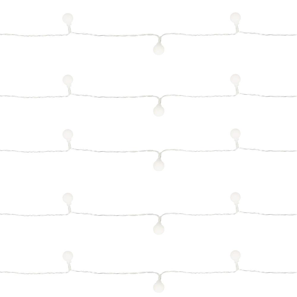 SARBATORILE SUNT TOT MAI APROAPE... Luminitele noastre de Craciun arata grozav pe un pom de Craciun, pe arbusti in gradina sau atarnand usor pe balustrada balconului. Acestea sunt accentul perfect pentru a crea o atmosfera festiva in jurul tau. Cu o gama larga de culori, puteti gasi cea mai potrivita pentru a va decora casa, gradina sau afacerea. Lasa-te purtat de atmosfera de sarbatoare si fa din Craciun un moment special pentru tine si familia ta. Luminile noastre se caracterizeaza prin calitate si manopera de inalta calitate. Le puteti utiliza atat in interior, cat si in exterior.Lantul luminos este format din LED-uri sub forma de bila. Acestea au fost plasate pe fire de cupru durabile, care sunt rezistente la rupere. Totul este alimentat de baterii, astfel incat il puteti atarna oriunde fara sa va faceti griji daca exista o priza de curent in apropiere. LUMINILE CU LED AU UN PROGRAMATOR CU 8 FUNCTII: COMBINATION (combinatie de moduri diferite)IN WAVE (se aprinde in valuri)SEQUENTIAL (iluminat secvential)SLO-GLO (stralucire lenta)CHASING / FLASH (flash rapid)SLOW FADE (estompare lenta)TWINKLE / FLASH (intermitent)STEADY ON (lumina continua) PARAMETRII: Culoare alba caldaProgramator cu 8 functiiLungime totala 7,5 mLungimea cablului de la sursa de alimentare la 1 lampa 30 cmAranjament de lumini 15 cmLumini 50 micro LED-uriLED-uri de economisire a energieiAlimentat cu 3x baterii AA (nu sunt furnizate)Arderea unei diode nu stinge setul!Rezistent la apa - fara sursa de alimentareLumini pe fire de cupru durabile cu diametrul de 0,9 mm, rezistente la rupereCertificat CE, RoHSClasa de protectie IP44Utilizare in interior si exteriorIzolatie transparentaMargele albe maturate cu diametrul de aproximativ 16 mm