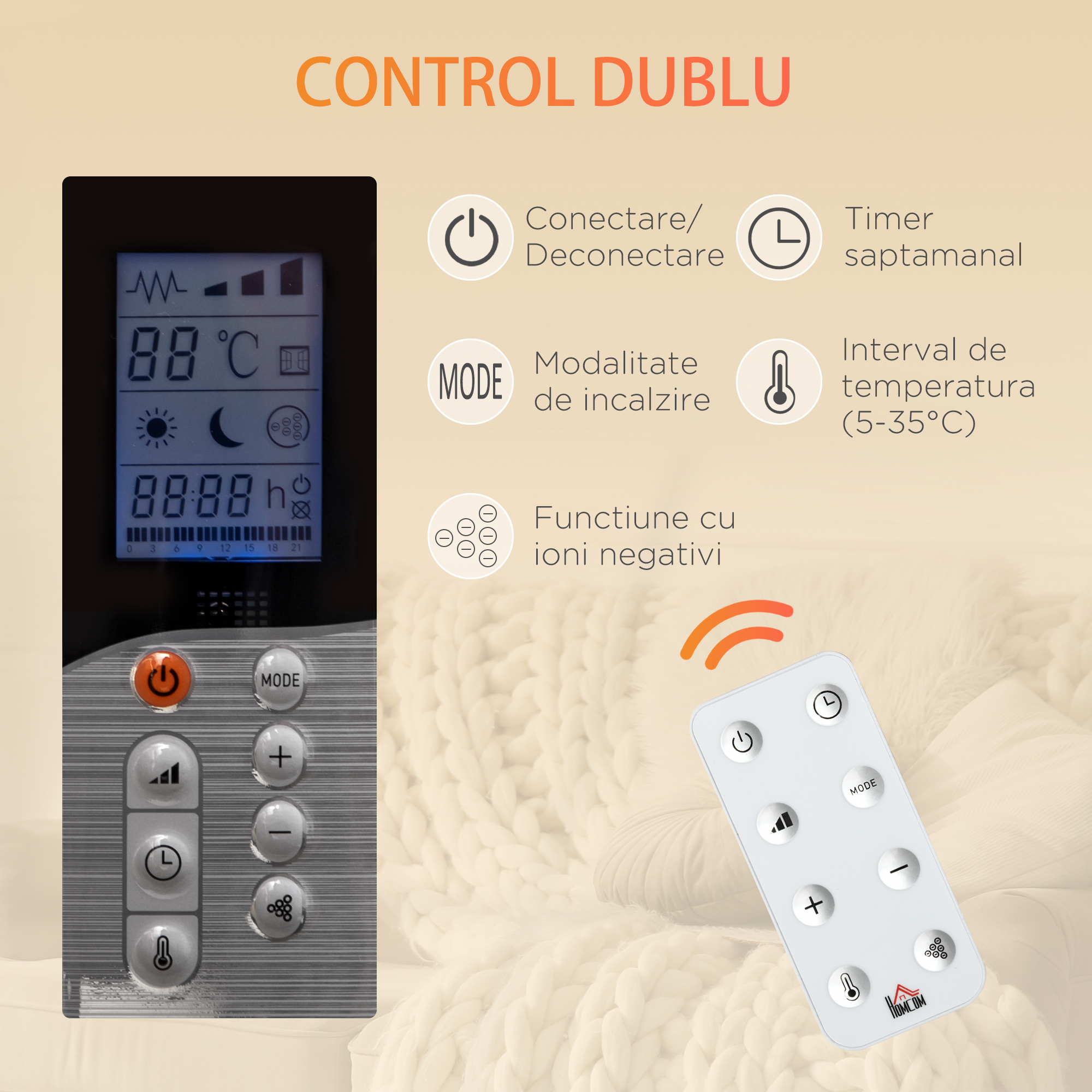 - USOR DE UTILIZAT: Ai libertatea de a alege modul de incalzire (Confort, Economie, Rezistent la inghet sau Mod liber) si temperatura dorita. Pentru a face viata si mai usoara, vine echipat cu un temporizator, astfel incat sa poti programa incalzitorul sa porneasca sau sa se opreasca automat.