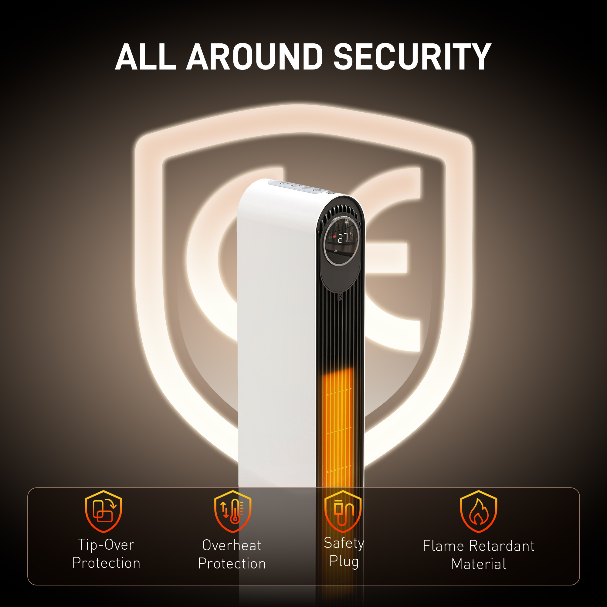 • SIGURANta COMPLETa: Cu protectii impotriva supraincalzirii si rasturnarii, materiale ignifuge V0 si un stecher de siguranta, acest incalzitor ofera securitate maxima, ideal in gospodariile active cu copii sau animale de companie.