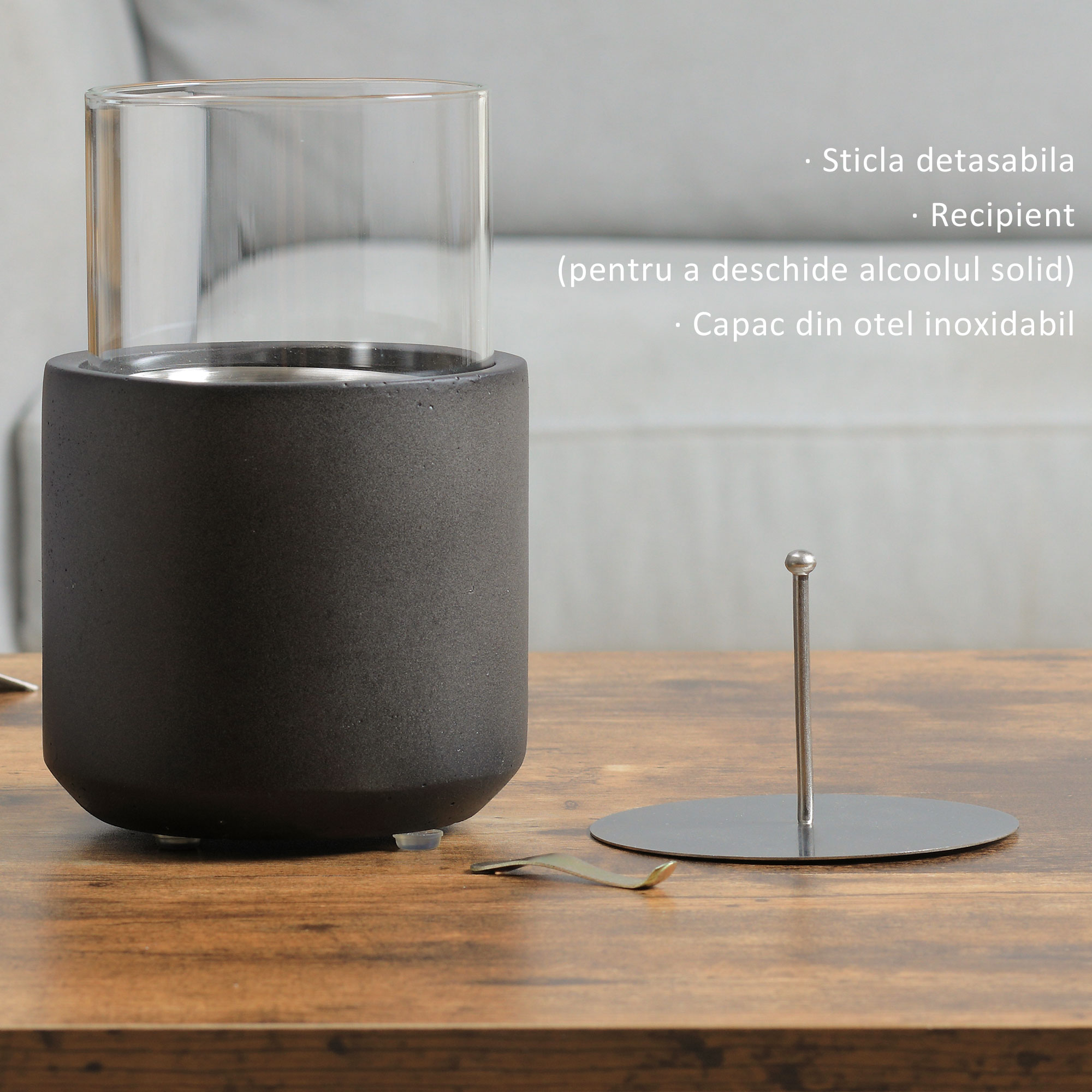 - sEMINEU DE MASa ELEGANT: Creeaza o atmosfera calda si rafinata cu semineul de masa [BRAND NAME]. Fabricat din beton rezistent, cu design modern gri inchis, functioneaza pe baza de etanol, fara fum sau miros.