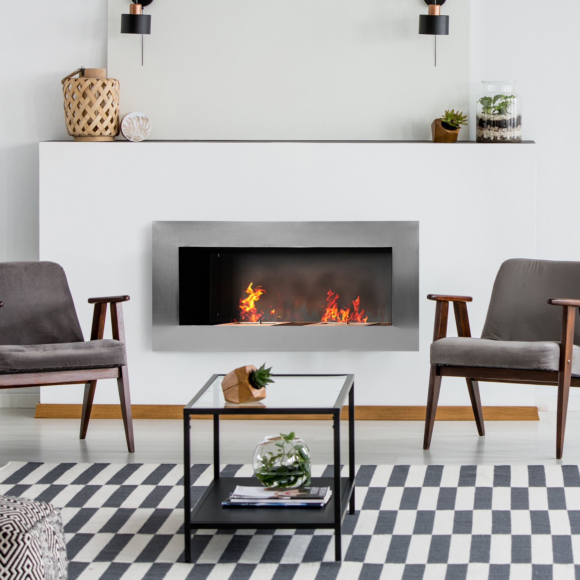 semineu pe Bioetanol Inox 110×54×14 cm cu 2 Arzatoare, Capacitate 1.5L, semineu Ecologic Suspendat pentru Interior