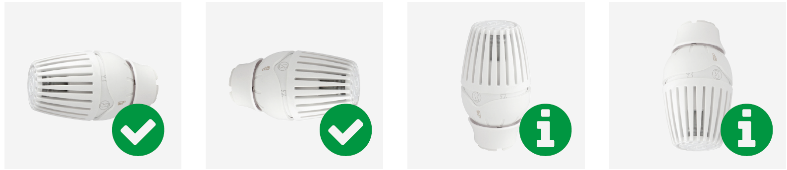 • Se recomanda montarea capetelor termostatice in pozitie orizontala. In cazul montarii verticale, caldura radiata direct de la calorifer poate influenta senzorul si poate duce la masurarea incorecta a temperaturii din incapere.