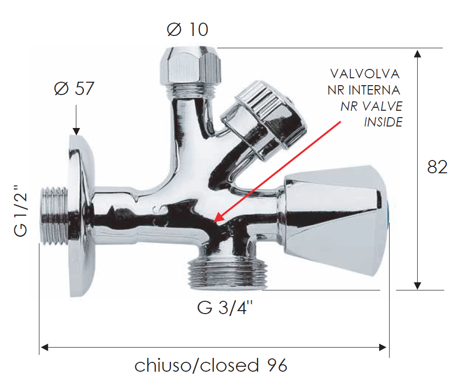 Robinet de trecere Remer Rubinetterie 121T, 1/2", alama cromata, montaj aparent, maner rotativ, finisaj crom lucios