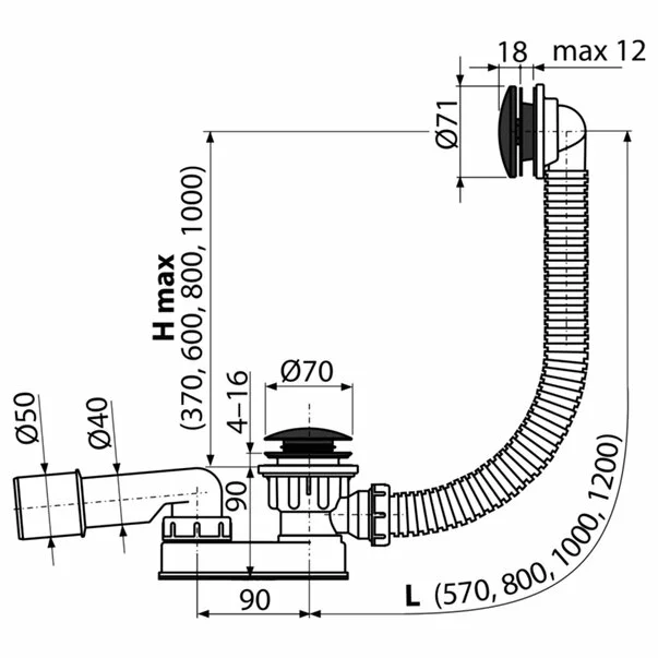 Sifon cu preaplin Alca A507BLACK click clack negru-mat