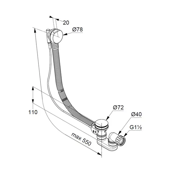 Kludi Sifon cu preaplin pentru cada Kludi Rotexa 2000 crom