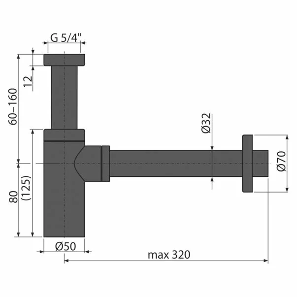 Sifon lavoar negru Alca A400BLACK DN32 metalic
