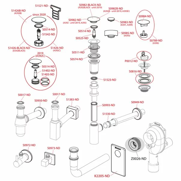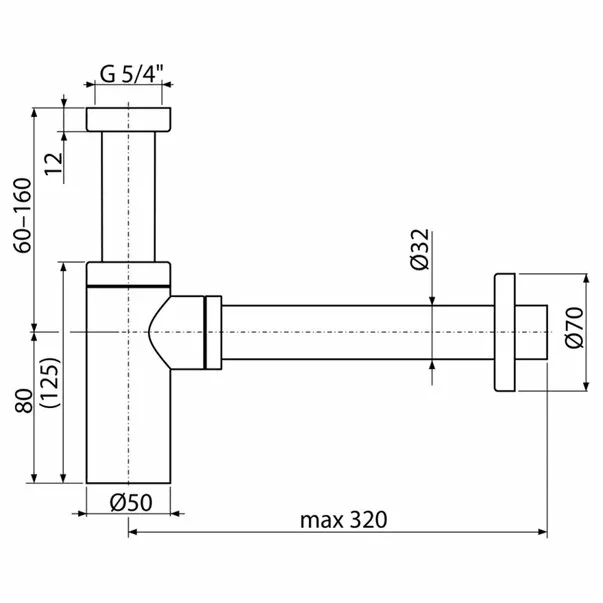 Sifon lavoar rotund alb Alca A400B DN32 metalic