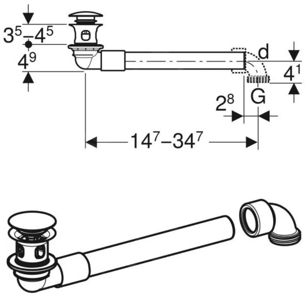 Geberit Ventil lavoar Geberit, universal, push to open, crom, 152.071.21.1