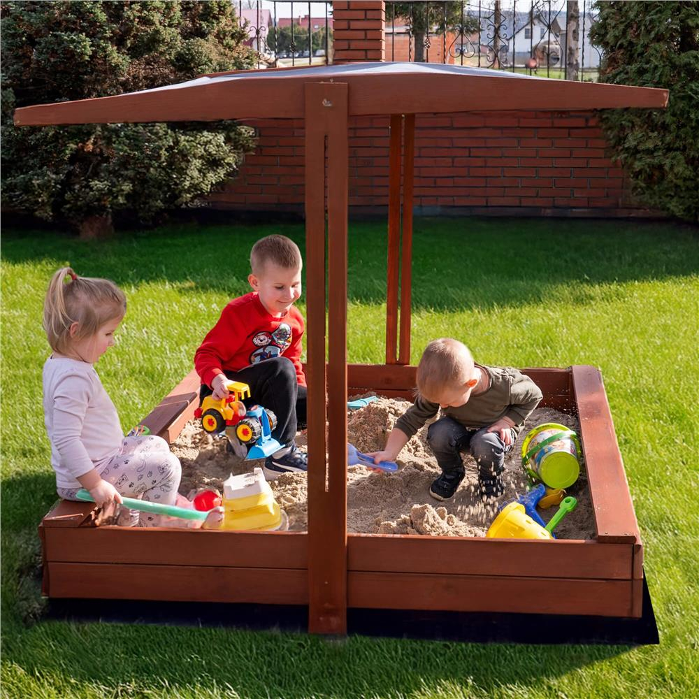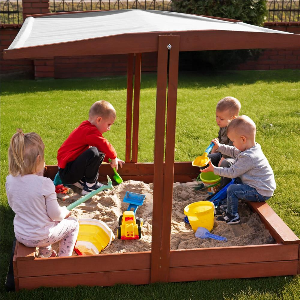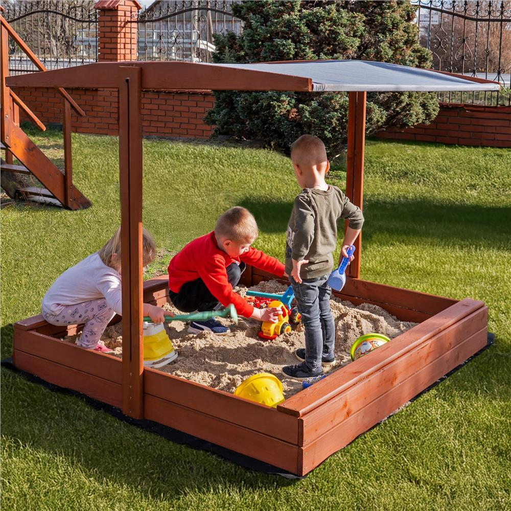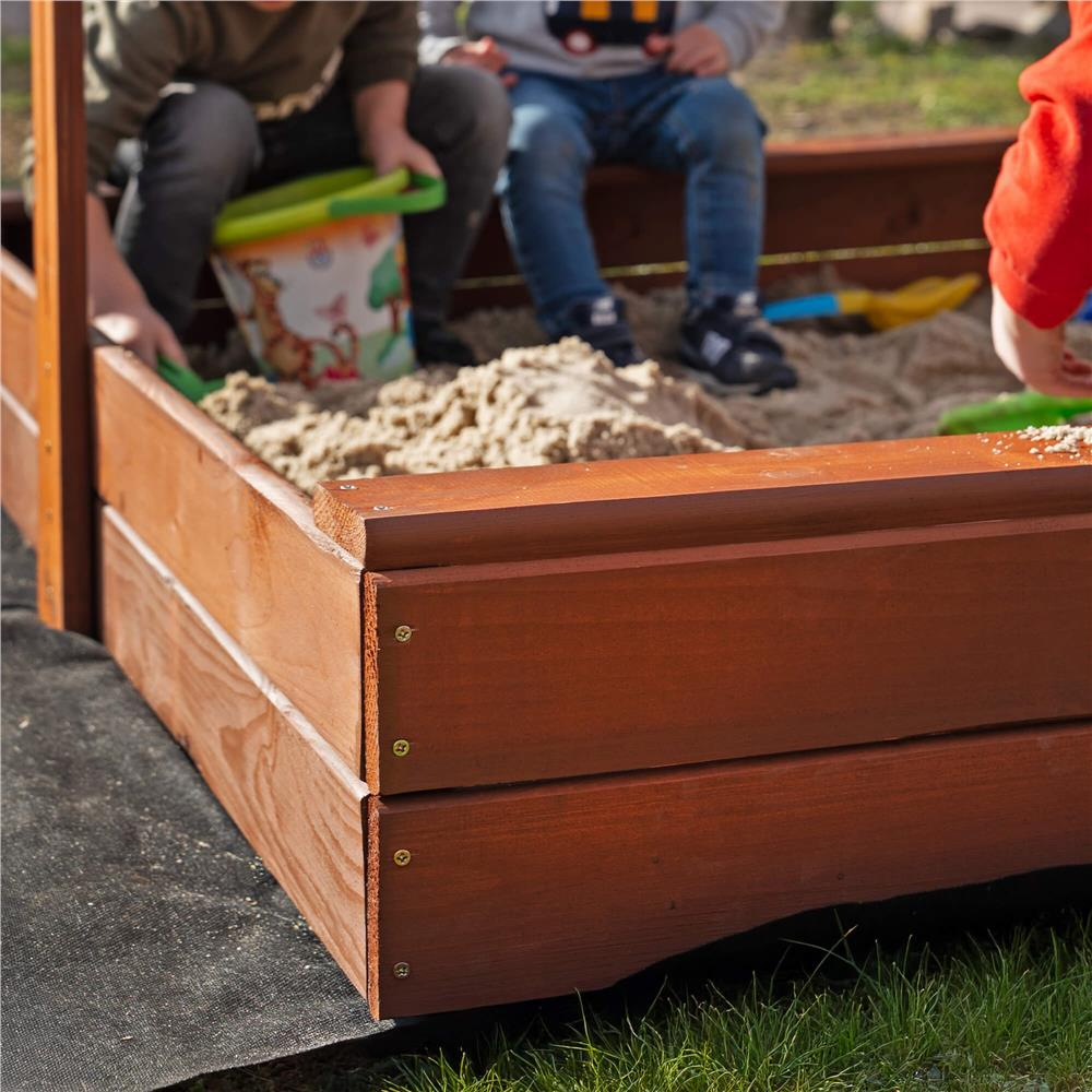Specificatii tehnice: Tip produs: Lada de nisip cu acoperis si bancute Material: Lemn de conifere + material textil Culoare lemn: Maro (tonuri castaniu) Culoare acoperis: Gri Certificare: CE Potrivit pentru: Copii peste 18 luni Dimensiuni totale: 140 x 140 x 121 cm Inaltime bancuta: 20 cm Inaltime margine fara bancuta: 18 cm Dimensiuni acoperis: 140 x 140 cm Grosime scanduri: 1,8 cm Latime scanduri: aprox. 8,5 cm Latime sezut bancuta: 8,5 cm Capacitate aproximativa: 350 litri Accesorii incluse: Geotextil 1,5 x 1,6 m, set complet de montaj Ambalaj: Pentru montaj propriu, include instructiuni si gauri preforate Scurta descriere: Aceasta lada de nisip robusta din lemn, cu acoperis pliabil si bancute laterale, este solutia ideala pentru joaca in aer liber. Fabricata in Polonia si tratata ecologic, include material textil pentru baza si un acoperis reglabil care protejeaza de soare. Lemnul este vopsit de doua ori si atent finisat pentru siguranta celor mici. Caracteristici principale: Structura solida din lemn masiv tratat cu impregnant ecologic Certificat CE – sigur pentru copii peste 18 luni Bancute laterale comode pentru sezut Acoperis reglabil pe inaltime si inclinare Functie de inchidere prin plierea bancutelor peste nisip Include geotextil pentru baza si kit complet de montaj Design compact si elegant, usor de integrat in gradina Muchii rotunjite pentru siguranta maxima Vopsire dubla pentru rezistenta la uzura si intemperii Capacitate generoasa: 350 litri