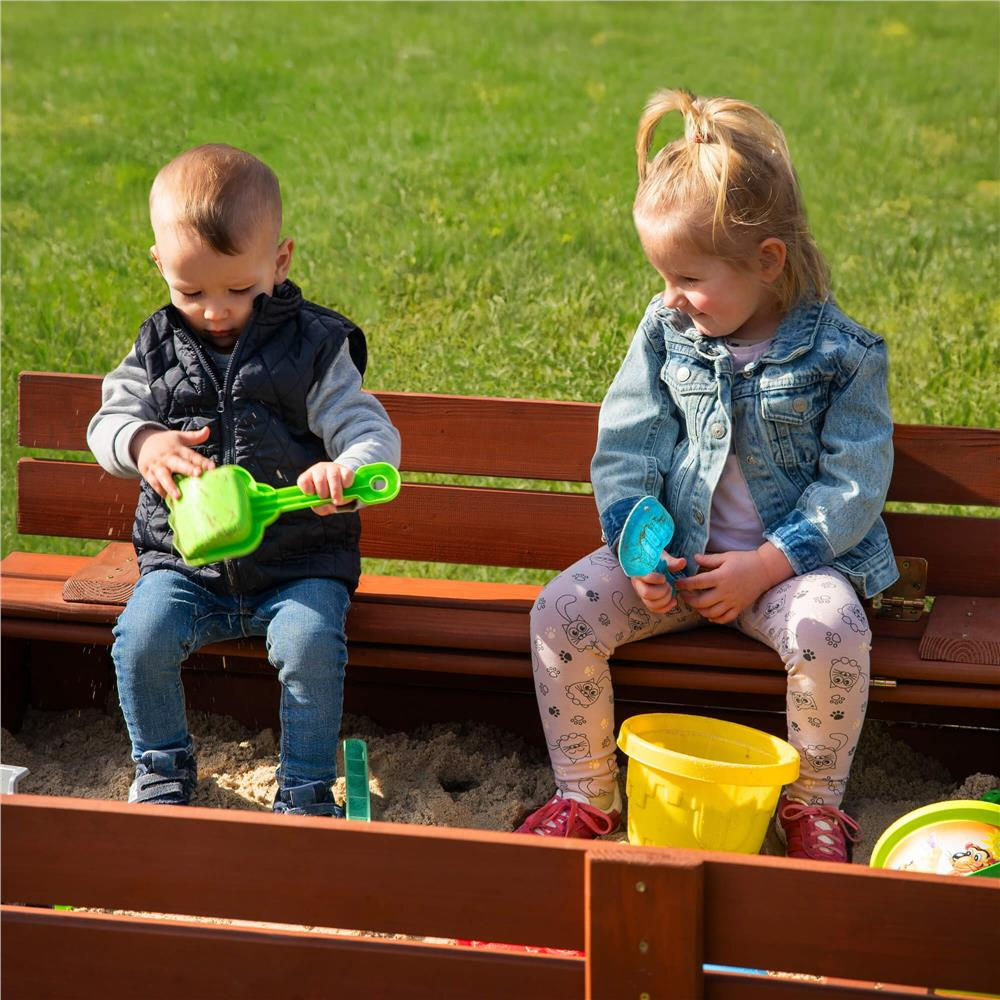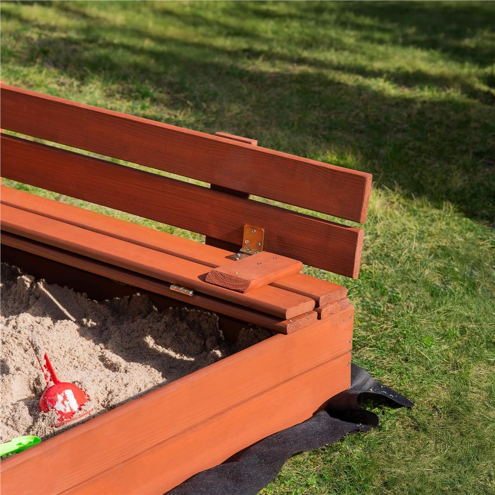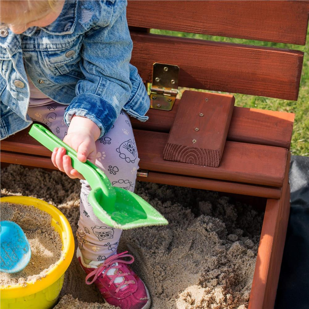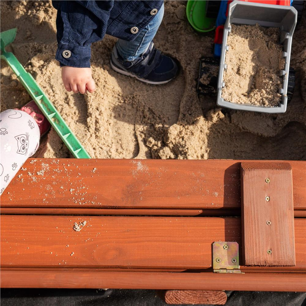 Specificatii tehnice: Tip produs: Lada de nisip pliabila cu bancute si capac Material: Lemn de conifere tratat cu impregnant ecologic Culoare lemn: Maro Certificare: CE Potrivit pentru: Copii peste 18 luni Dimensiuni extinsa: 120 x 120 x 41 cm Dimensiune inchisa: 120 x 120 x 22 cm Inaltime bancuta: 23 cm Adancime sezut: 18,5 cm Inaltime spatar: 19 cm Grosime scanduri: 1,8 cm Latime scanduri: aprox. 8,5 cm Capacitate aproximativa: 250 litri Accesorii incluse: Prelata impermeabila 2x2 m, geotextil 1,2x1,3 m, set complet de montaj Ambalaj: Pentru montaj propriu, include instructiuni si gauri preforate Scurta descriere: Aceasta lada de nisip pliabila din lemn, cu functie de capac rabatabil si bancute laterale, este ideala pentru joaca in aer liber. Produsul este realizat in Polonia din lemn masiv tratat ecologic, cu muchii rotunjite si finisaj premium prin vopsire dubla. Include plandeka impermeabila si geotextil pentru protectia solului. Caracteristici principale: Structura solida din lemn masiv de conifere Certificat CE – sigur pentru copii peste 18 luni Bancute laterale transformabile in capac de inchidere Margini rotunjite pentru siguranta sporita Pliabila si usor de depozitat in extrasezon Prelata albastra impermeabila inclusa – cu inele metalice Geotextil negru inclus pentru baza interioara Capacitate generoasa: 250 litri Produs tratat cu impregnant ecologic si vopsit de doua ori Ideal pentru curte, gradina sau locuri de joaca private