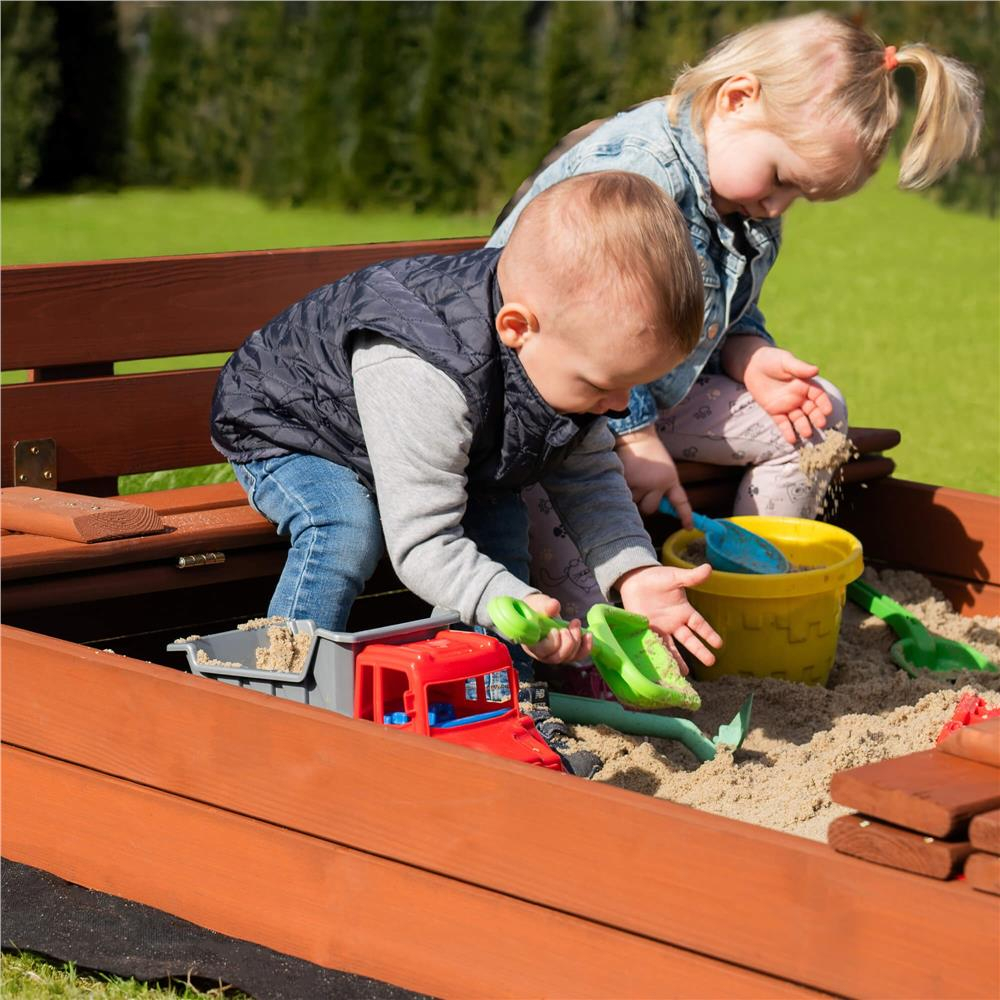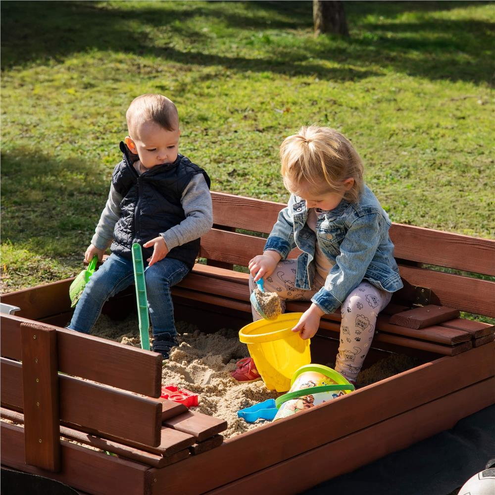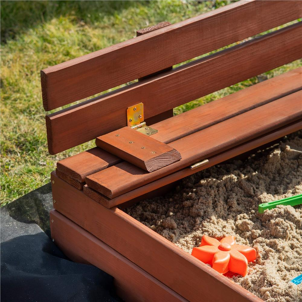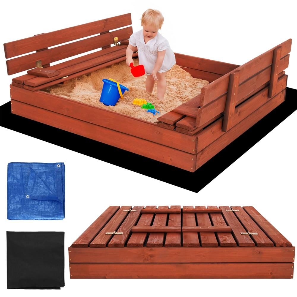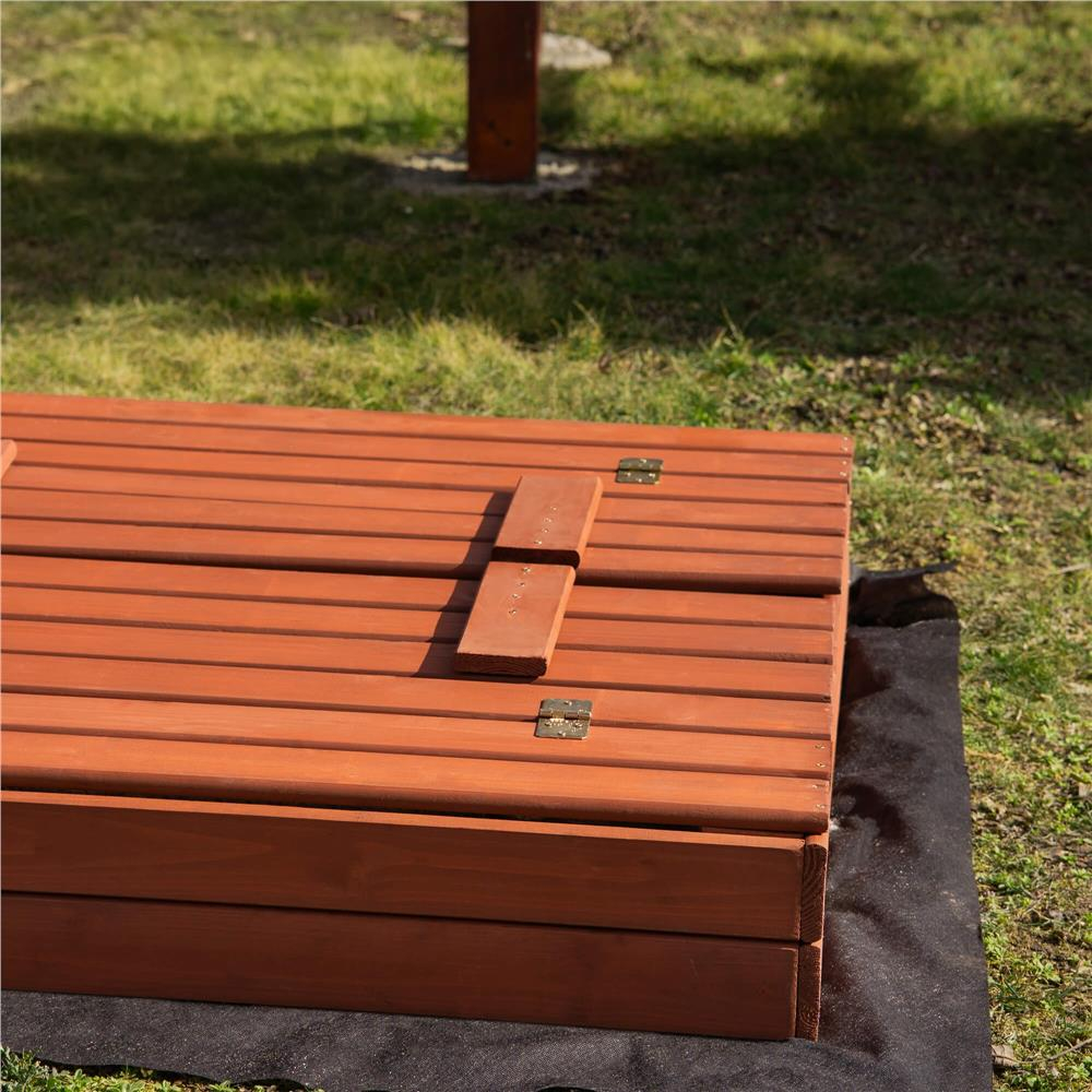 Specificatii tehnice: Tip produs: Lada de nisip pliabila cu bancute si capac Material: Lemn de conifere tratat cu impregnant ecologic Culoare lemn: Maro Certificare: CE Potrivit pentru: Copii peste 18 luni Dimensiuni extinsa: 120 x 120 x 41 cm Dimensiune inchisa: 120 x 120 x 22 cm Inaltime bancuta: 23 cm Adancime sezut: 18,5 cm Inaltime spatar: 19 cm Grosime scanduri: 1,8 cm Latime scanduri: aprox. 8,5 cm Capacitate aproximativa: 250 litri Accesorii incluse: Prelata impermeabila 2x2 m, geotextil 1,2x1,3 m, set complet de montaj Ambalaj: Pentru montaj propriu, include instructiuni si gauri preforate Scurta descriere: Aceasta lada de nisip pliabila din lemn, cu functie de capac rabatabil si bancute laterale, este ideala pentru joaca in aer liber. Produsul este realizat in Polonia din lemn masiv tratat ecologic, cu muchii rotunjite si finisaj premium prin vopsire dubla. Include plandeka impermeabila si geotextil pentru protectia solului. Caracteristici principale: Structura solida din lemn masiv de conifere Certificat CE – sigur pentru copii peste 18 luni Bancute laterale transformabile in capac de inchidere Margini rotunjite pentru siguranta sporita Pliabila si usor de depozitat in extrasezon Prelata albastra impermeabila inclusa – cu inele metalice Geotextil negru inclus pentru baza interioara Capacitate generoasa: 250 litri Produs tratat cu impregnant ecologic si vopsit de doua ori Ideal pentru curte, gradina sau locuri de joaca private