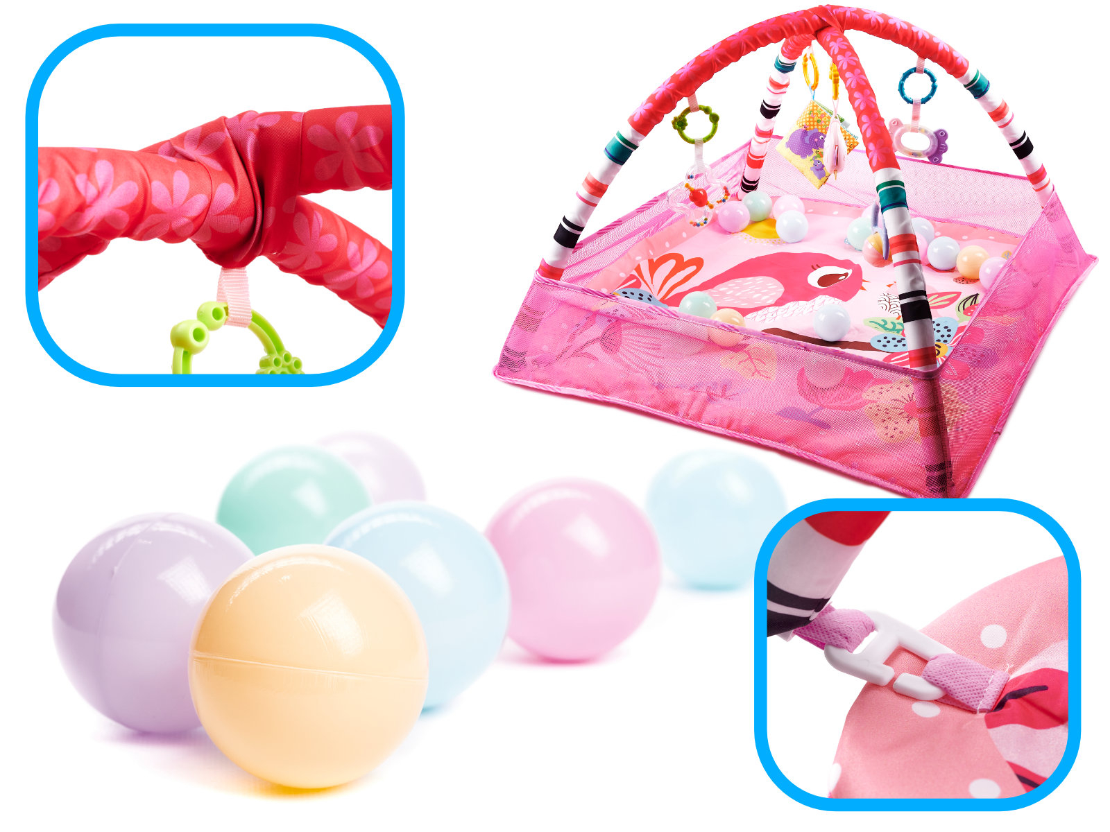 Tarc de joaca multifunctional, creat pentru a oferi un spatiu sigur si stimulant pentru bebelusi inca din primele luni de viata. Conceput cu atentie la detalii, sustine dezvoltarea armonioasa si creste odata cu copilul. Caracteristici principale: Dimensiuni optime – 76x76 cm, ideal pentru utilizare in interior. Design multifunctional – poate fi utilizat ca tarc de joaca, spatiu de explorare, piscina cu mingi sau zona de izolare pe podea . Arcade interactive cu jucarii suspendate – stimuleaza dezvoltarea coordonarii si motricitatii. Include 18 mingi colorate , perfecte pentru joc si explorare. Jucarii senzoriale – carte interactiva, 3 zornaitoare si un inel gingival pentru stimularea simturilor. Plasa laterala de 15 cm – ofera siguranta si vizibilitate pentru parinti. Materiale sigure si confortabile , adaptate pielii delicate a bebelusului. Usor de montat si depozitat , fiind ideal pentru acasa sau calatorii. Acest tarc de joaca este alegerea perfecta pentru a crea un mediu sigur si interactiv pentru cei mici, sustinand dezvoltarea motorie si senzoriala. Ideal pentru orice familie cu bebelusi!