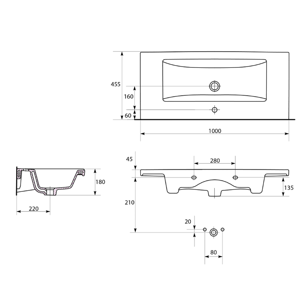 Lavoar incastrat alb 100 cm, dreptunghiular, Cersanit Como