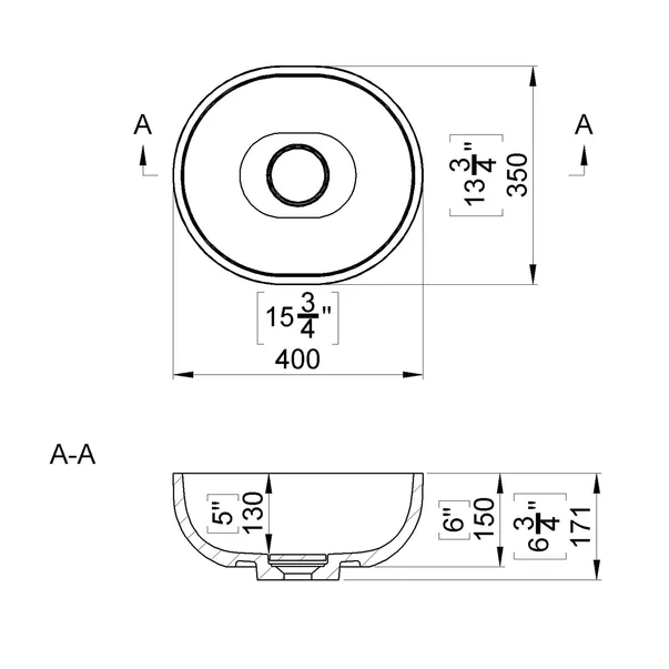Lavoar pe blat din compozit Marmite Chira 40 cm alb