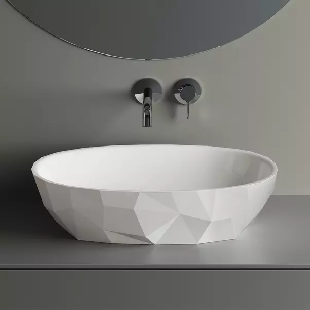 Se potriveste armonios cu diverse stiluri de design de interior si poate fi amplasat pe mobilier sau blat de baie, oferind un aspect rafinat si modern.
