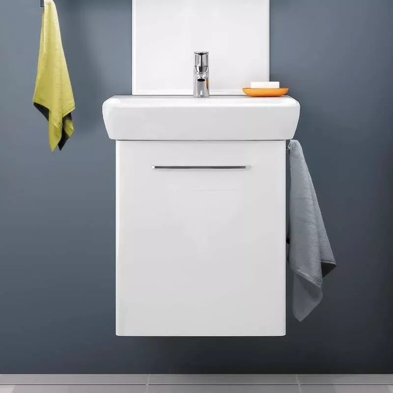 Disponibile în diverse dimensiuni, de la modele compacte de 50 cm la variante generoase de 100 cm, lavoarele Selnova includ opțiuni pentru montaj suspendat, pe blat sau cu mobilier integrat. Designul practic, cu margini bine definite și spațiu amplu pentru utilizare, este completat de compatibilitatea cu mobilierul Geberit Selnova, disponibil în finisaje elegante precum alb sau nuc, pentru o personalizare perfectă. Unele modele includ orificiu pentru baterie și preaplin, asigurând versatilitate și confort.