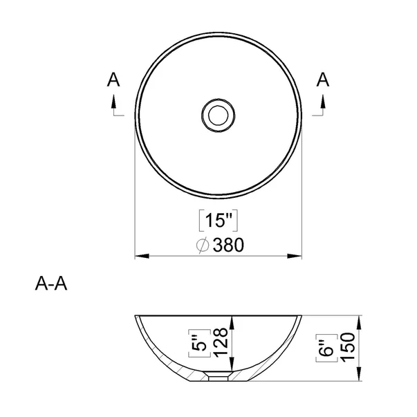 Lavoar pe blat din compozit Marmite Riga Low rotund 38 cm alb
