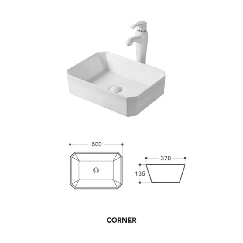 Lavoar pe blat, Fluminia, Corner, dreptunghiular, 50 x 37 cm, alb