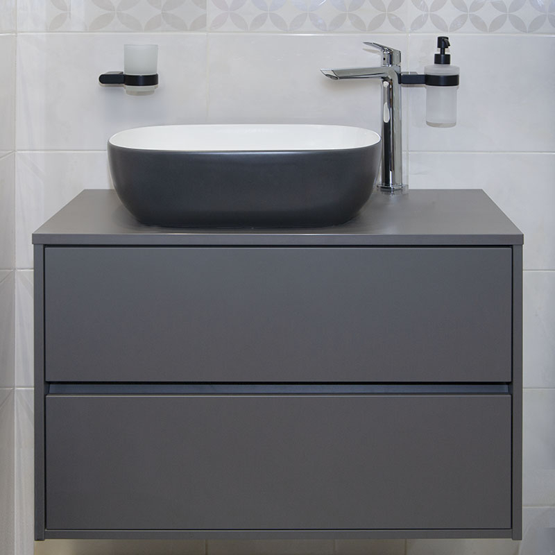 - lavoarul se monteaza fie pe un blat din marmura, travertin, MDF fie pe un mobilier care in partea de sus se inchide cu un blat