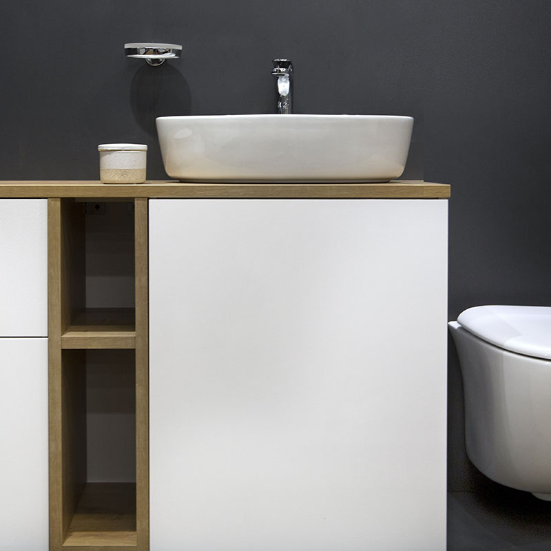 - lavoarul se monteaza fie pe un blat din marmura, travertin, MDF fie pe un mobilier care in partea de sus se inchide cu un blat;