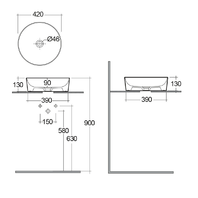 Lavoar pe blat, RAK, Feeling, rotund, diametrul 42 cm, cappuccino