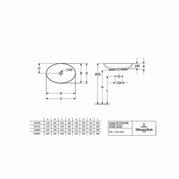 Villeroy&Boch Lavoar pe blat Villeroy&Boch Loop&Friends oval 62 cm alb