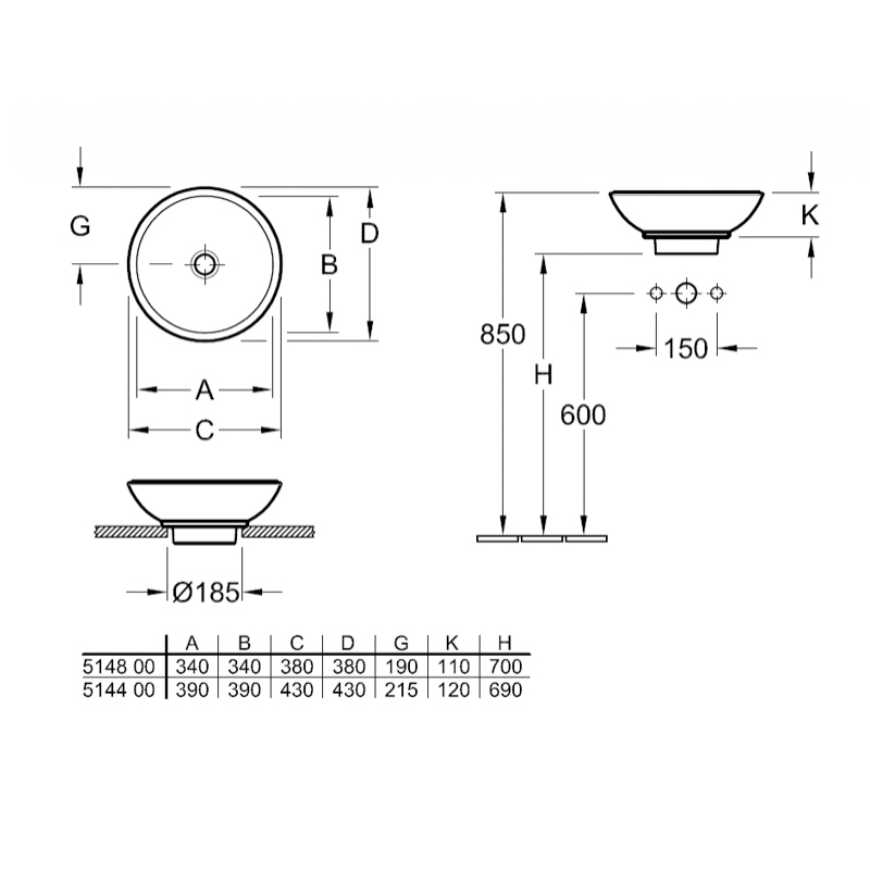 - pentru fixarea lavoarului in blat se executa un orificiu 18.5cm (vezi schita tehnica)