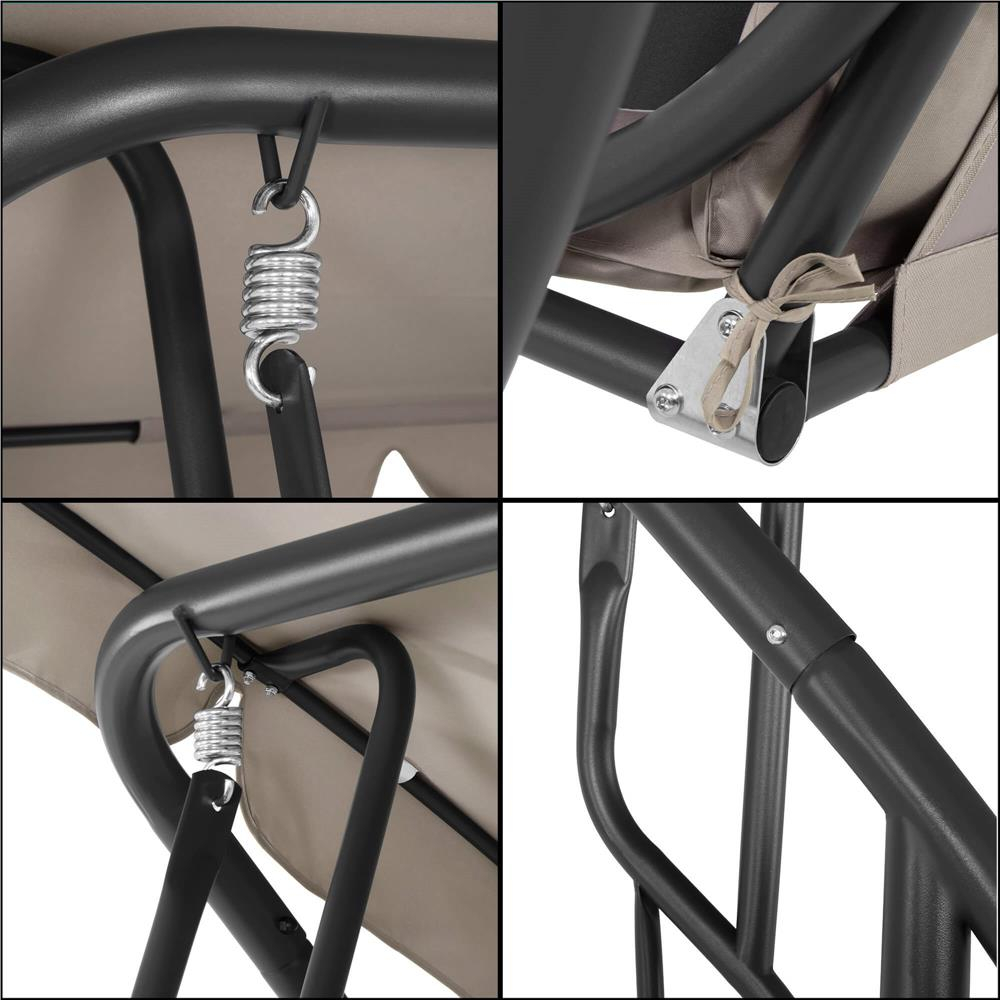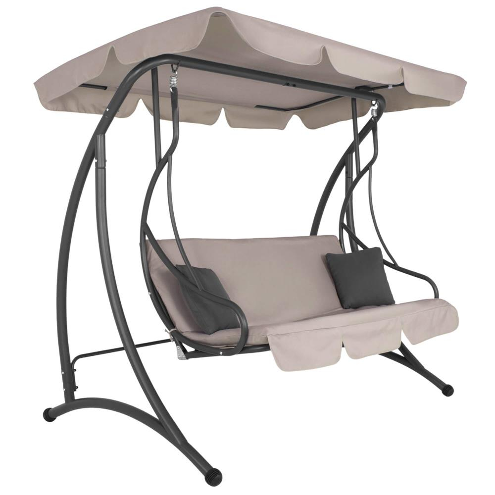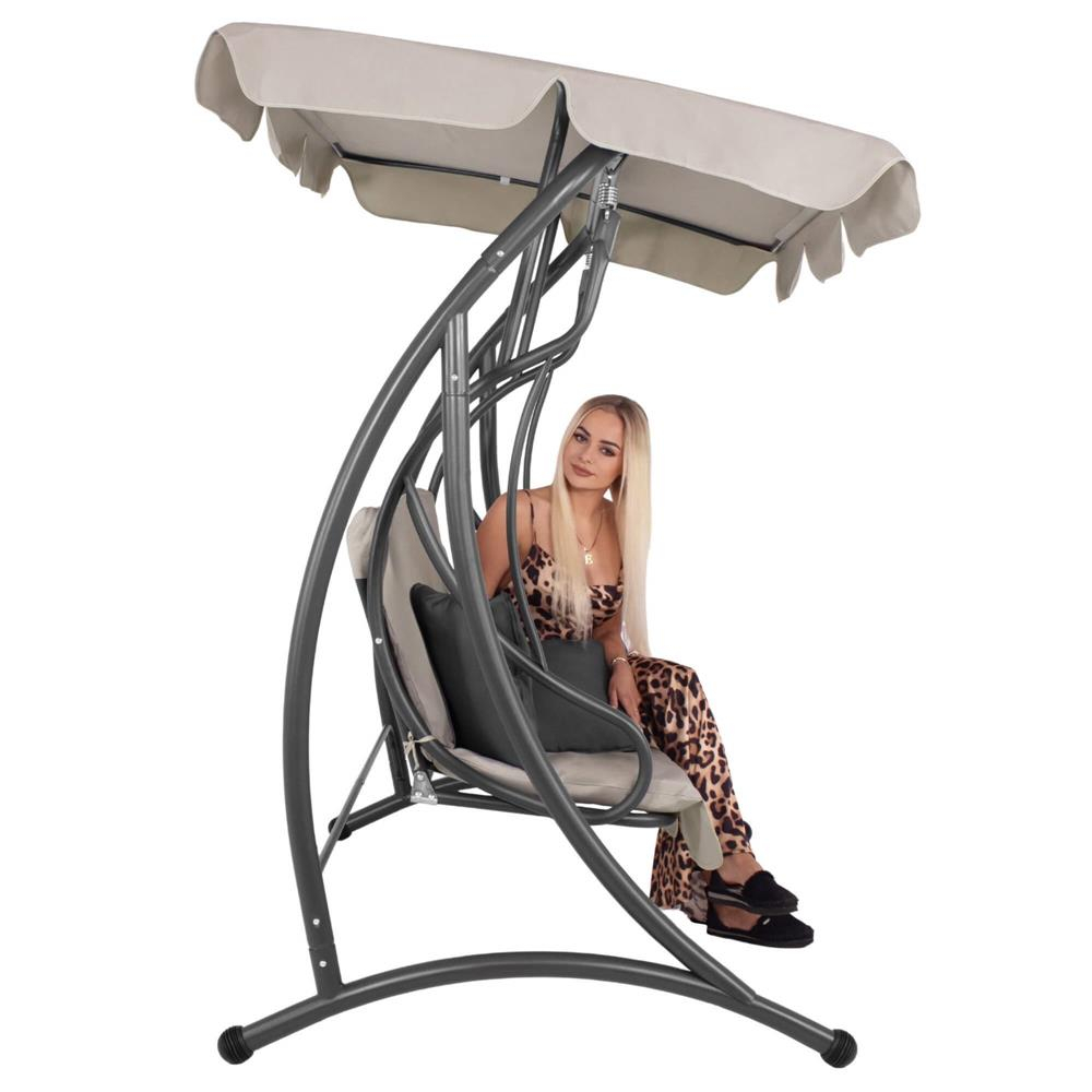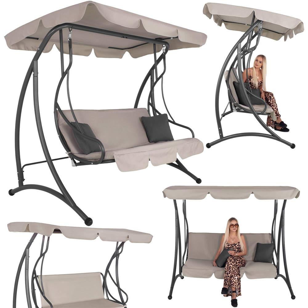 Leagan de gradina 190x115x176 cm, pentru 3 persoane, copertina reglabila, perne incluse, cadru otel si material impermeabil, bej